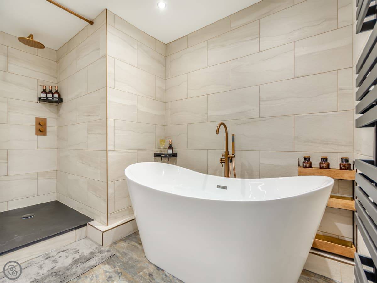 The garden is enclosed and private. It has a hot tub and an outdoor shower. There's parking on the drive and an electric vehicle charger.