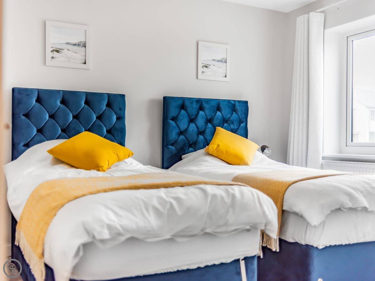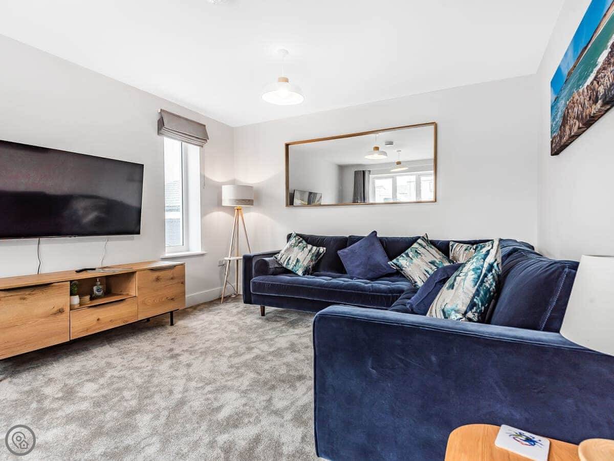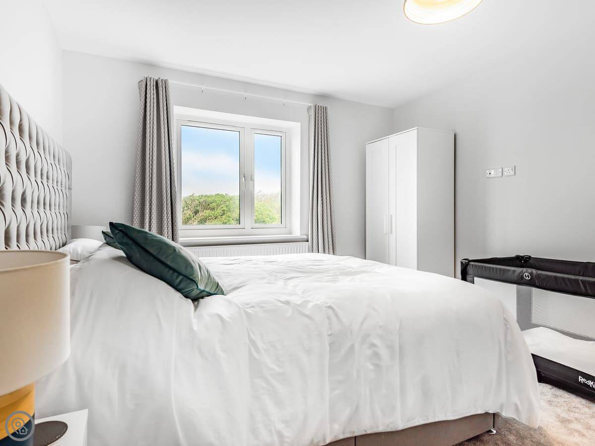 Back inside there is a separate living room, great for relaxing after a busy day of adventures, with inviting corner sofa and further Smart TV. There is also a useful utility room, large downstairs cloakroom and a cosy snug/den for the little ones to relax and enjoy their own space, with board games and books. Upstairs, the neutral décor with subtle reminders of surf and sea reveal four good sized bedrooms. The master bedroom boasts a Juliet balcony with glimpses of the sea on the horizon.