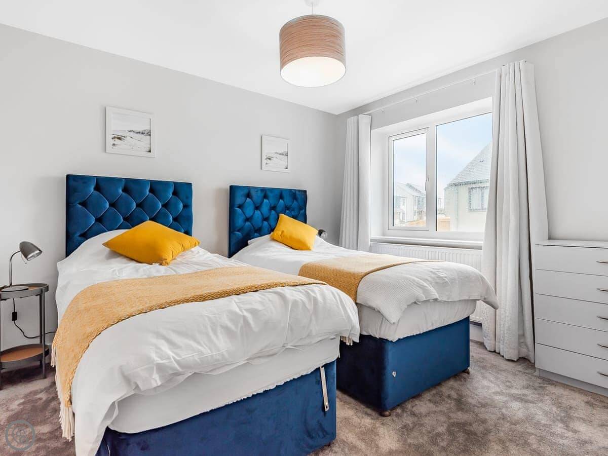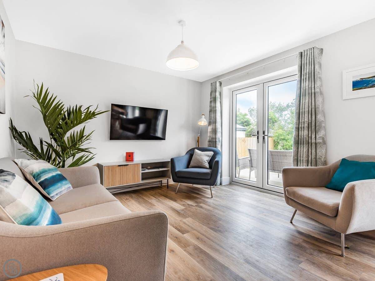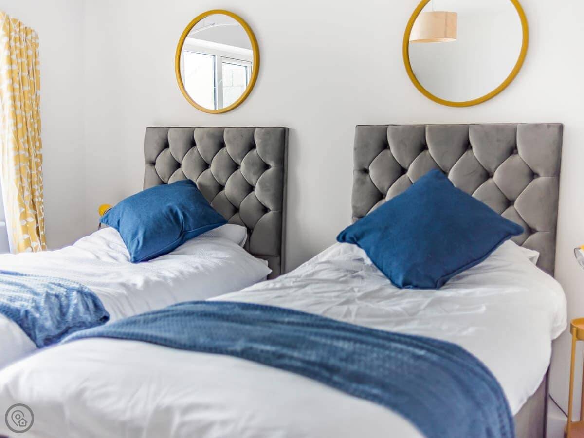 Back inside there is a separate living room, great for relaxing after a busy day of adventures, with inviting corner sofa and further Smart TV. There is also a useful utility room, large downstairs cloakroom and a cosy snug/den for the little ones to relax and enjoy their own space, with board games and books. Upstairs, the neutral décor with subtle reminders of surf and sea reveal four good sized bedrooms. The master bedroom boasts a Juliet balcony with glimpses of the sea on the horizon.