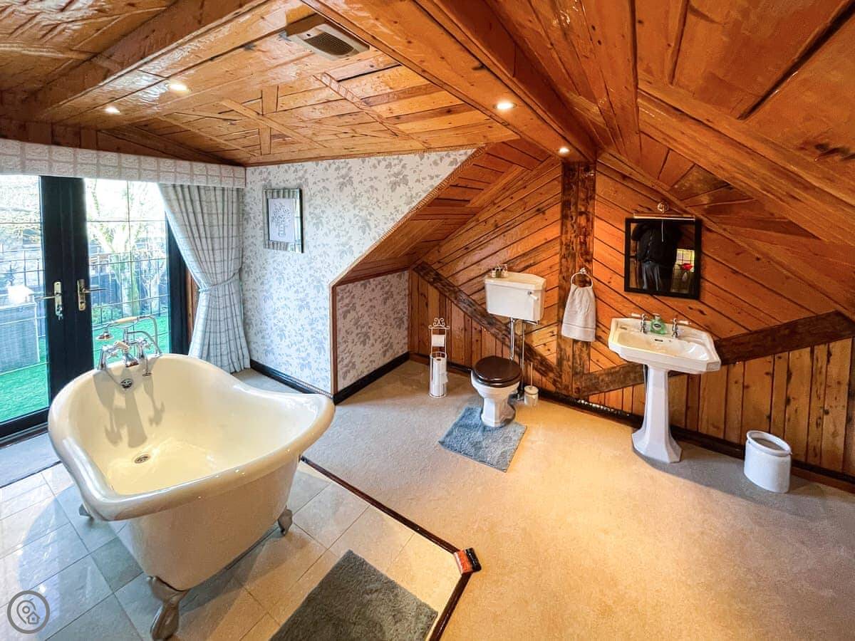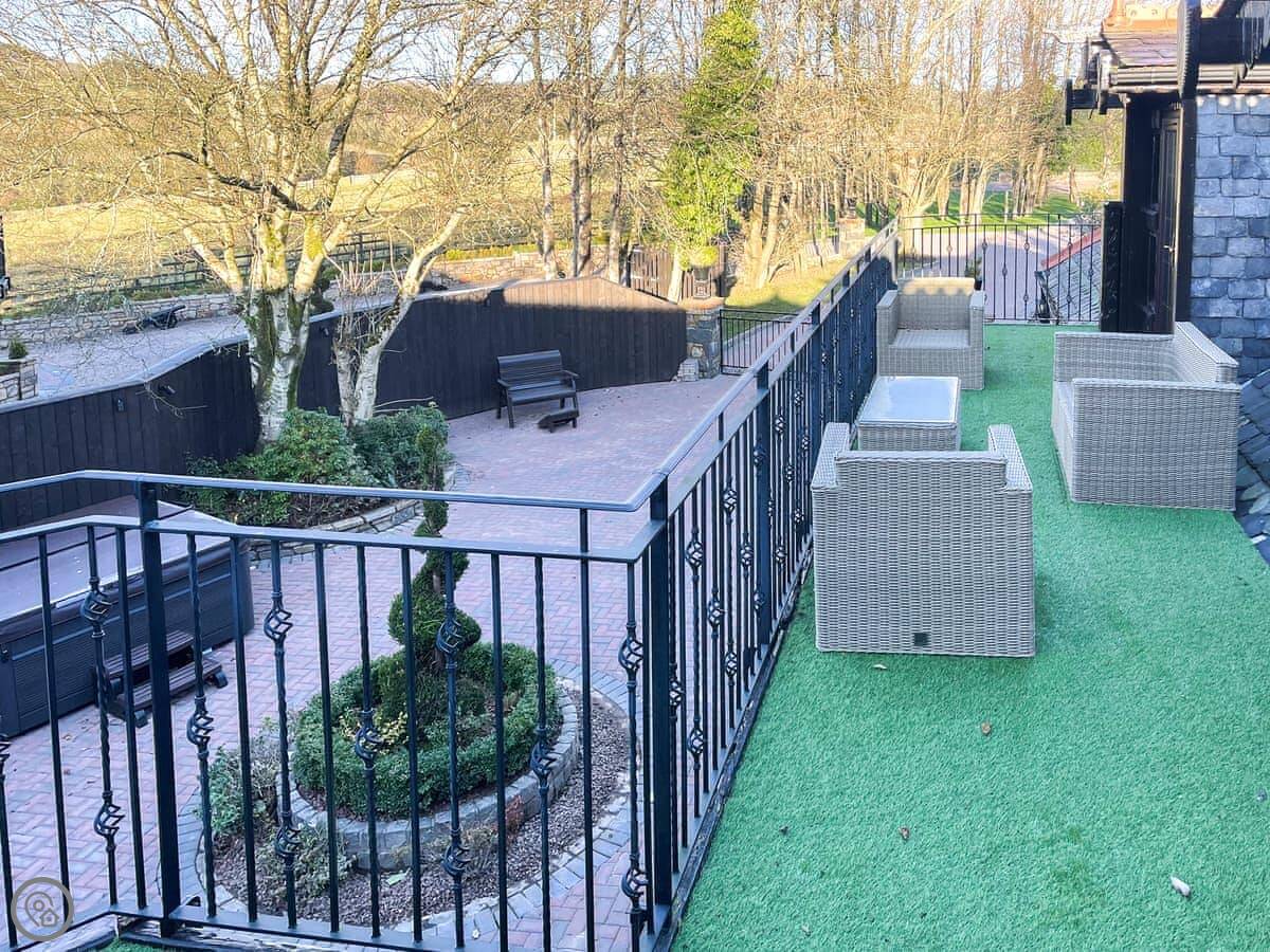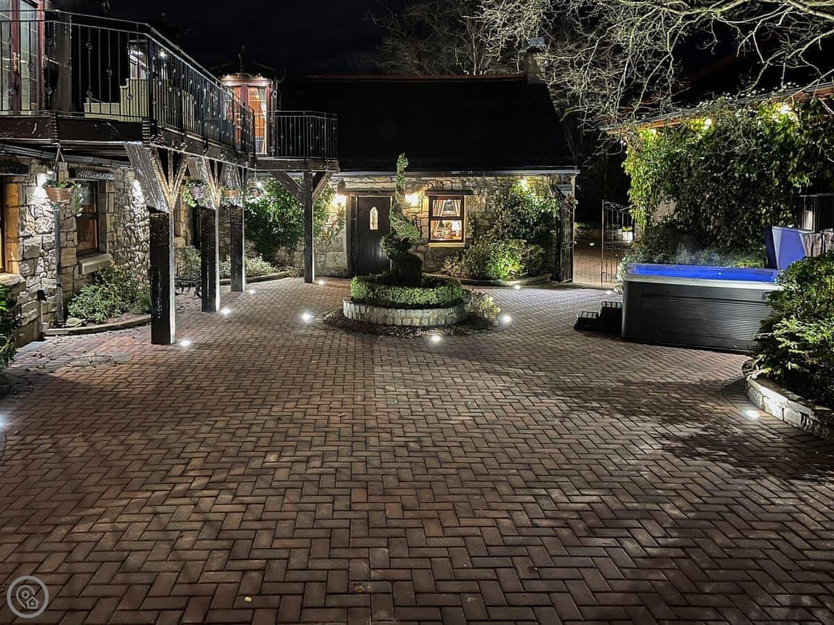 The garden has a patio and its own hot tub. You can use the barbecue. There's parking for a couple of cars.