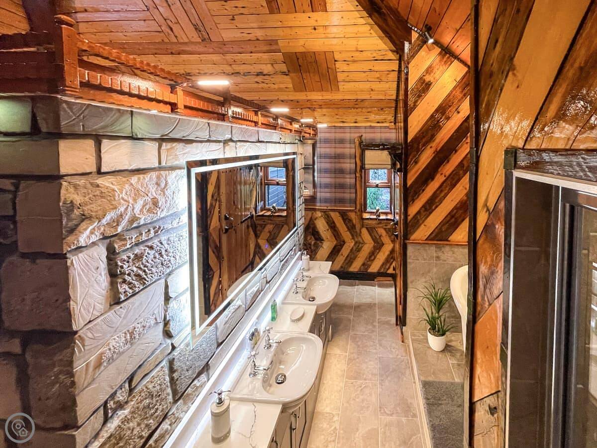 Inside, it's got a wood burner for chilly nights, a washing machine, and a dishwasher. Towels and bedding are included. There's WiFi and a TV.