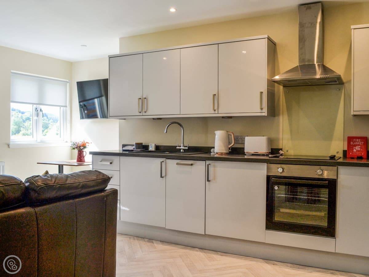 This is Birch Apartment in Aberfoyle. It's part of an old guest house that's been split into four flats. Yours is all on one level.