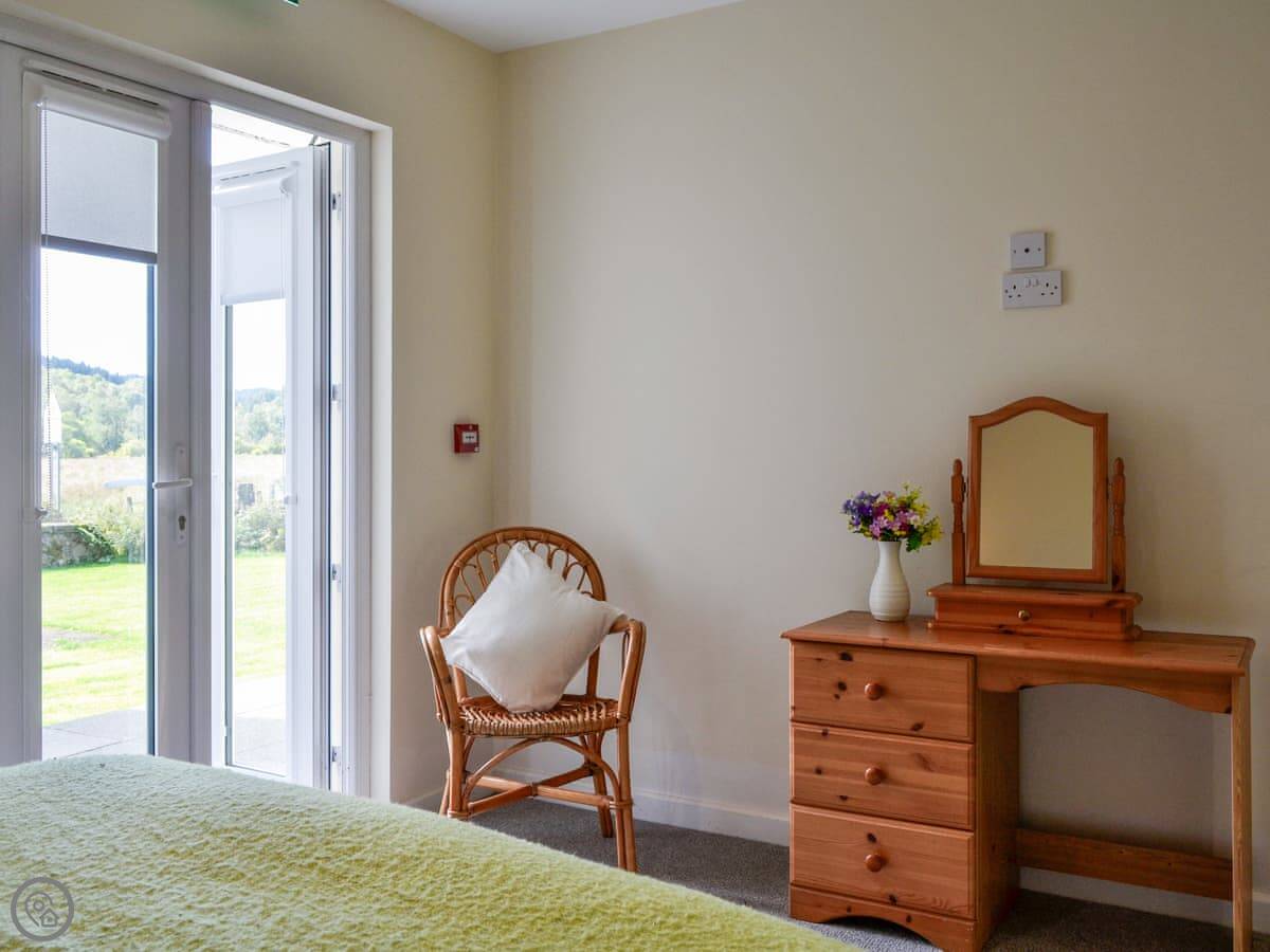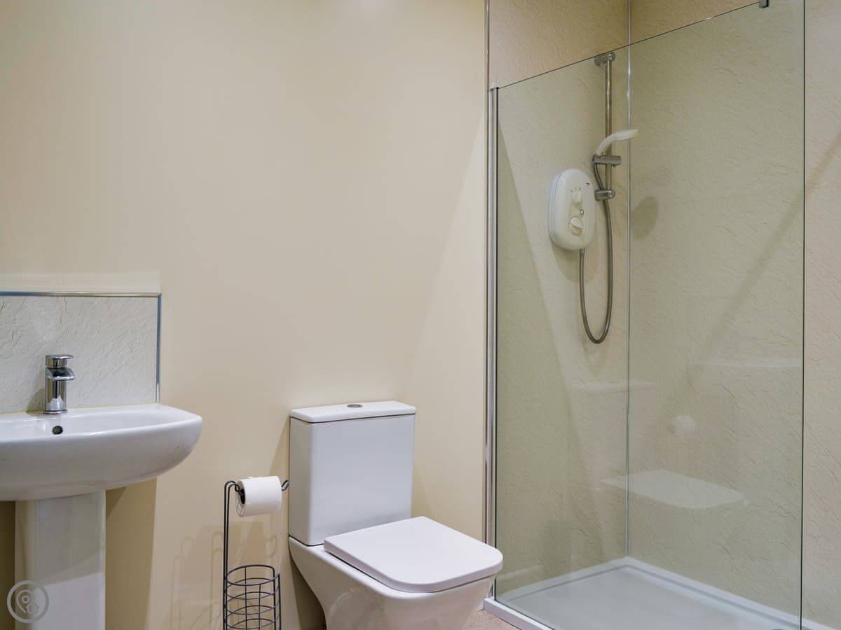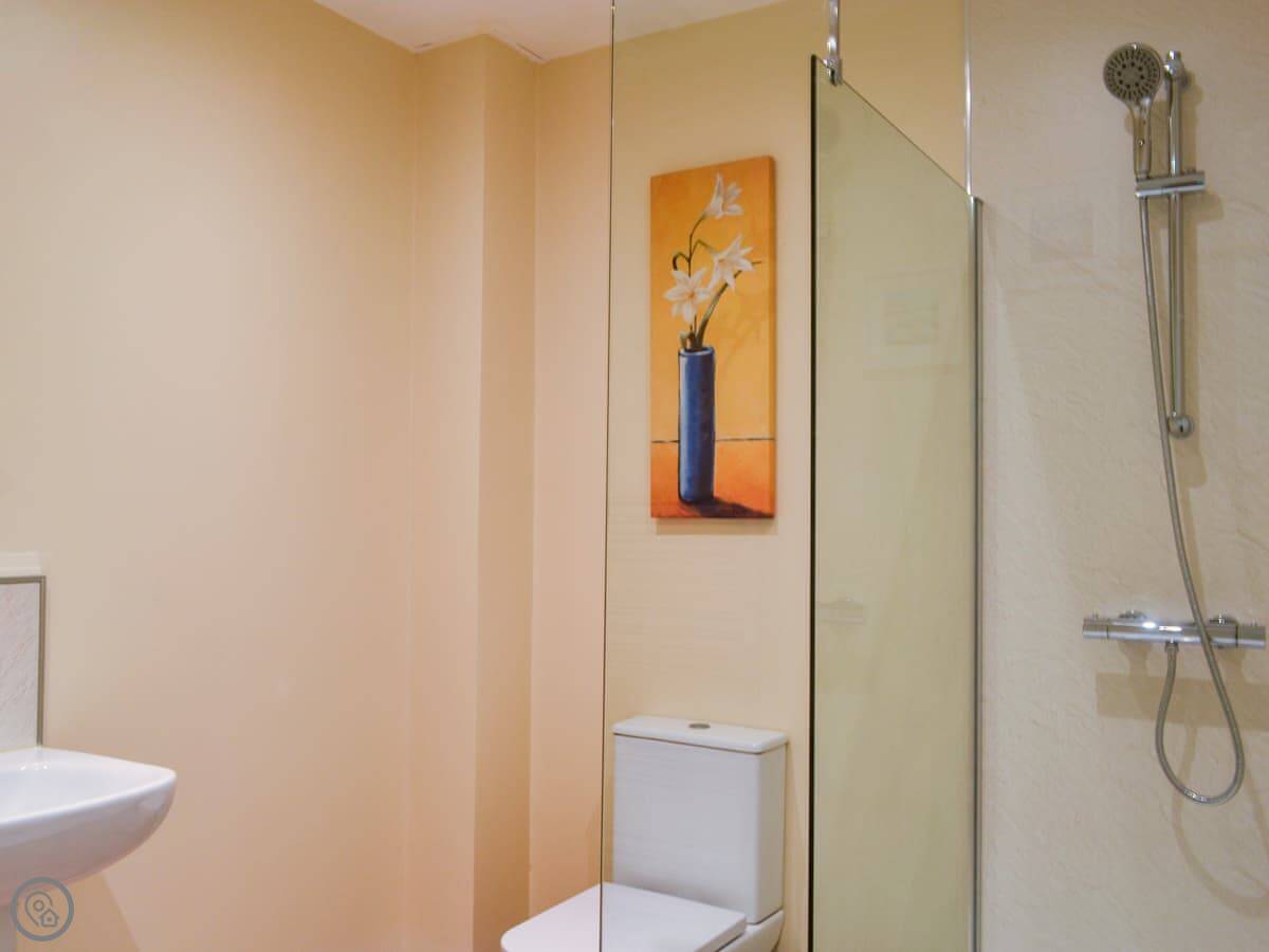 It sleeps four. Two bedrooms. One's a double, the other is a twin with its own shower room attached. There's another shower room off the hall. It's a 4 Star place, so it's comfortable and well kept.