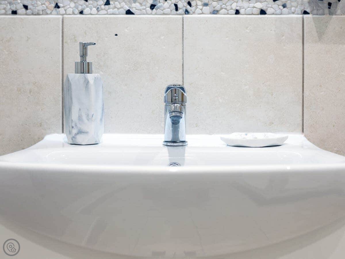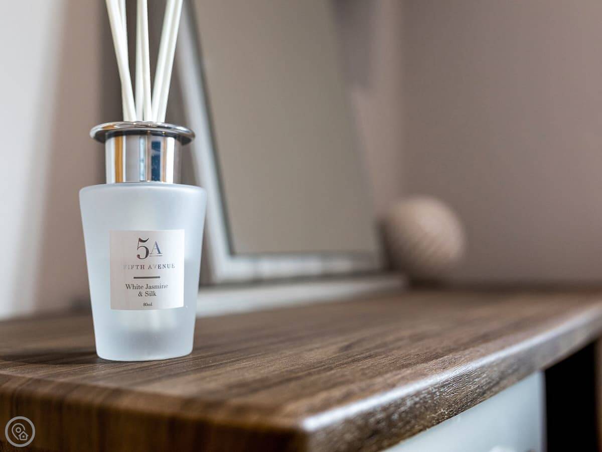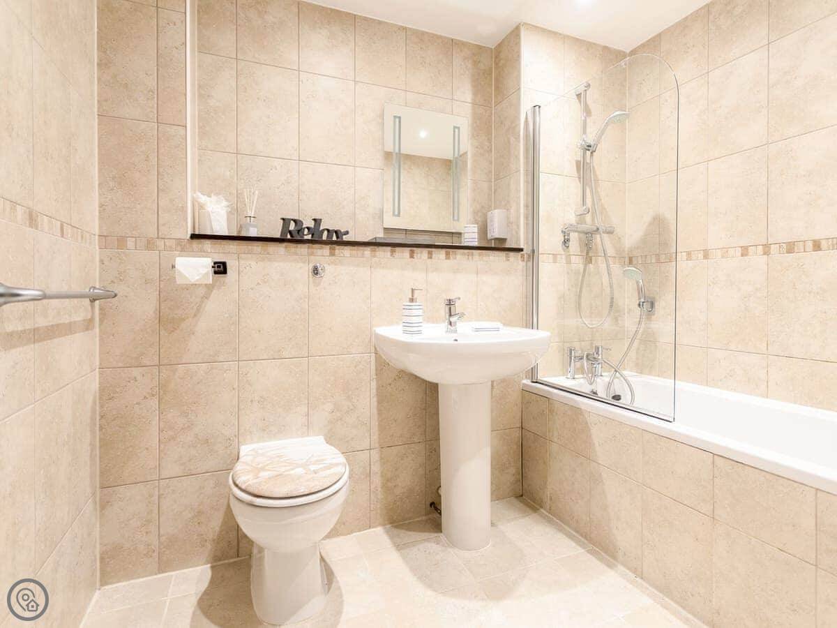 It sleeps four. Two bedrooms, two bathrooms. One's an ensuite. The main bathroom has a bath with a shower over it. It's got a 4 Star rating, so it's comfortable and well-equipped.