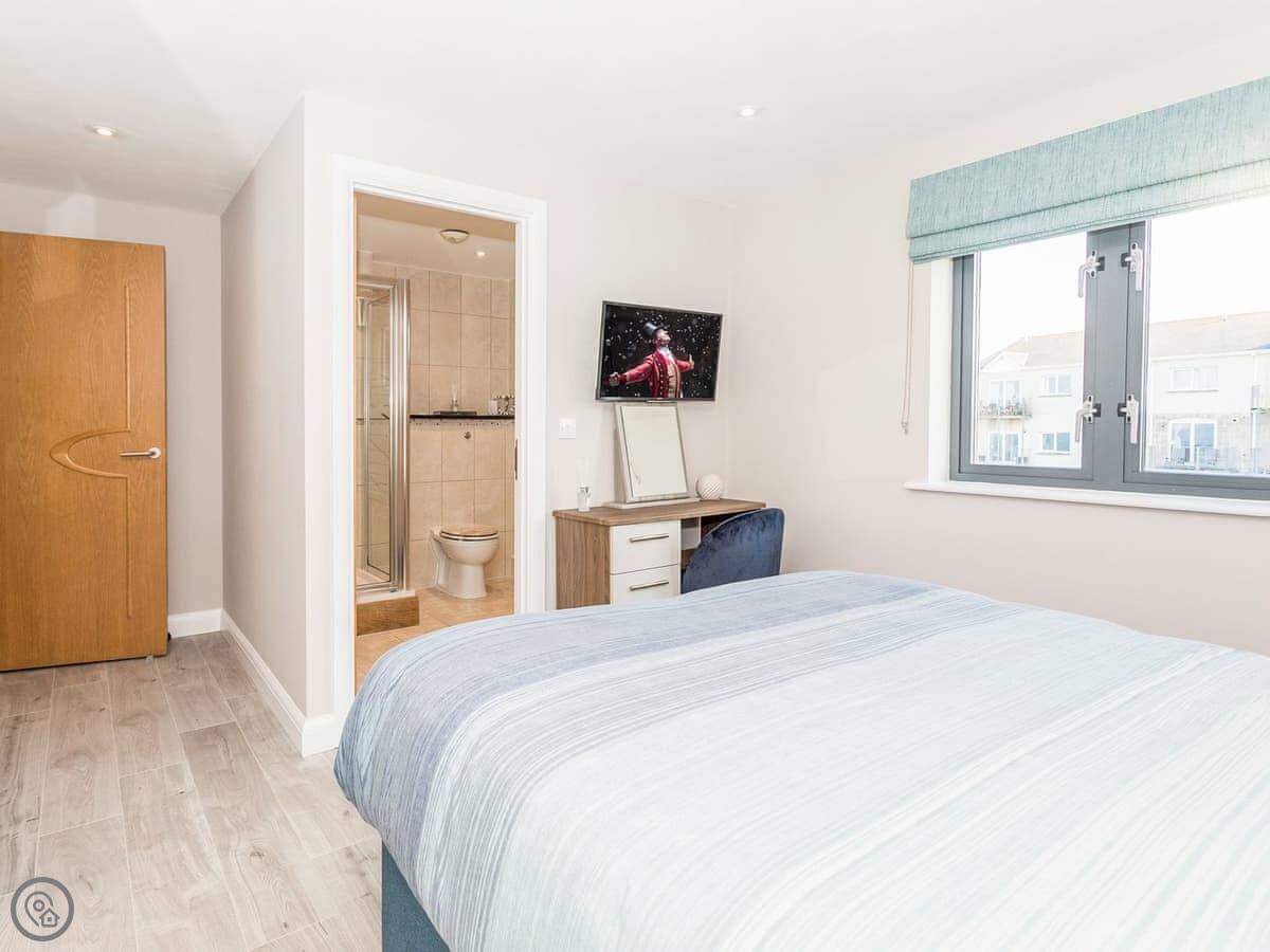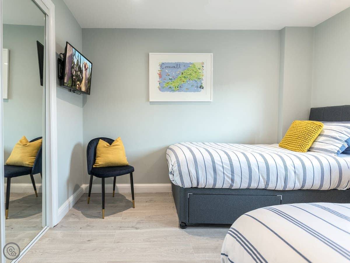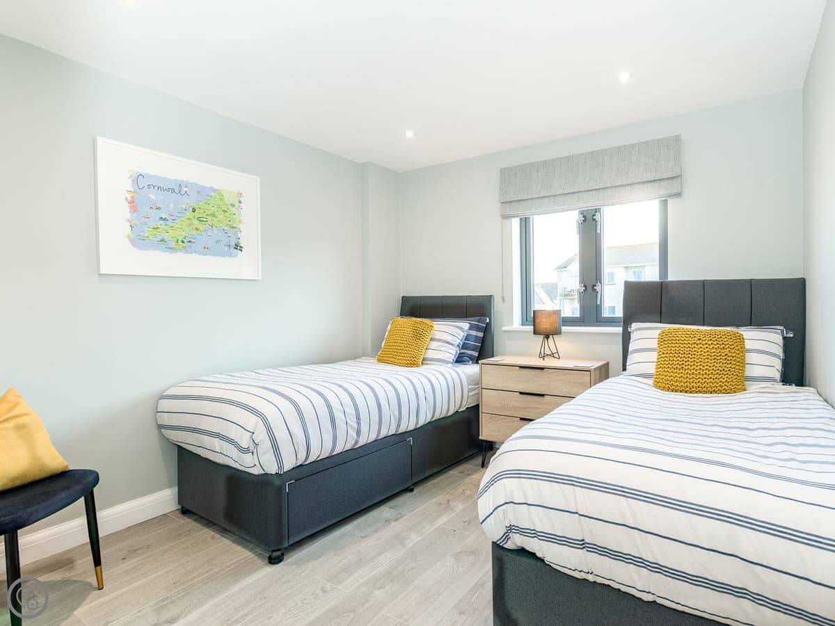 It's about a 15 minute walk down to Fistral Beach, maybe 20. That's the main surfing beach. Towan beach and the town centre are a bit further, maybe 25 minutes on foot. There's a coast path right on the doorstep if you want to walk without going into town.
