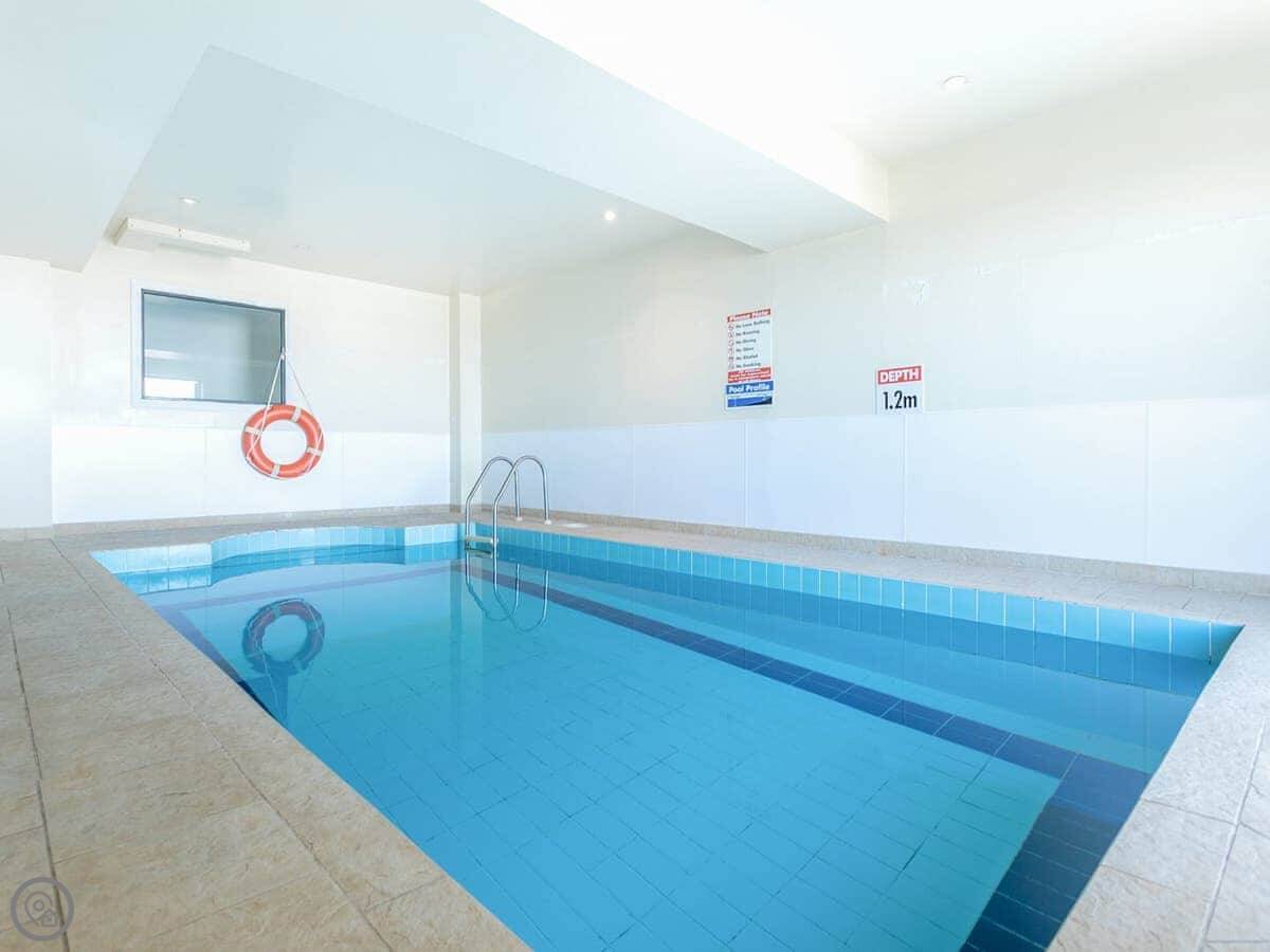 You have access to the shared indoor swimming pool in the complex, which is open year-round. Parking is secure and on-site.