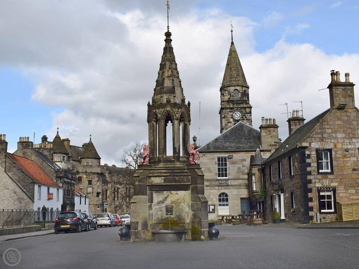 You're basically in the middle of Falkland village. The palace and gardens are a couple of minutes' walk away. The village has cobbled streets, a few shops, some nice places to eat and a couple of pubs. The Falkland Estate is right there for walks in the woods.