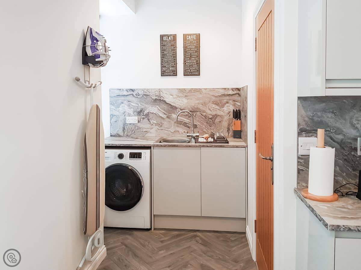 For facilities: there's a washing machine, a dishwasher, parking on site, and the bedding and towels are included. There's Wi-Fi and a TV. No pets.