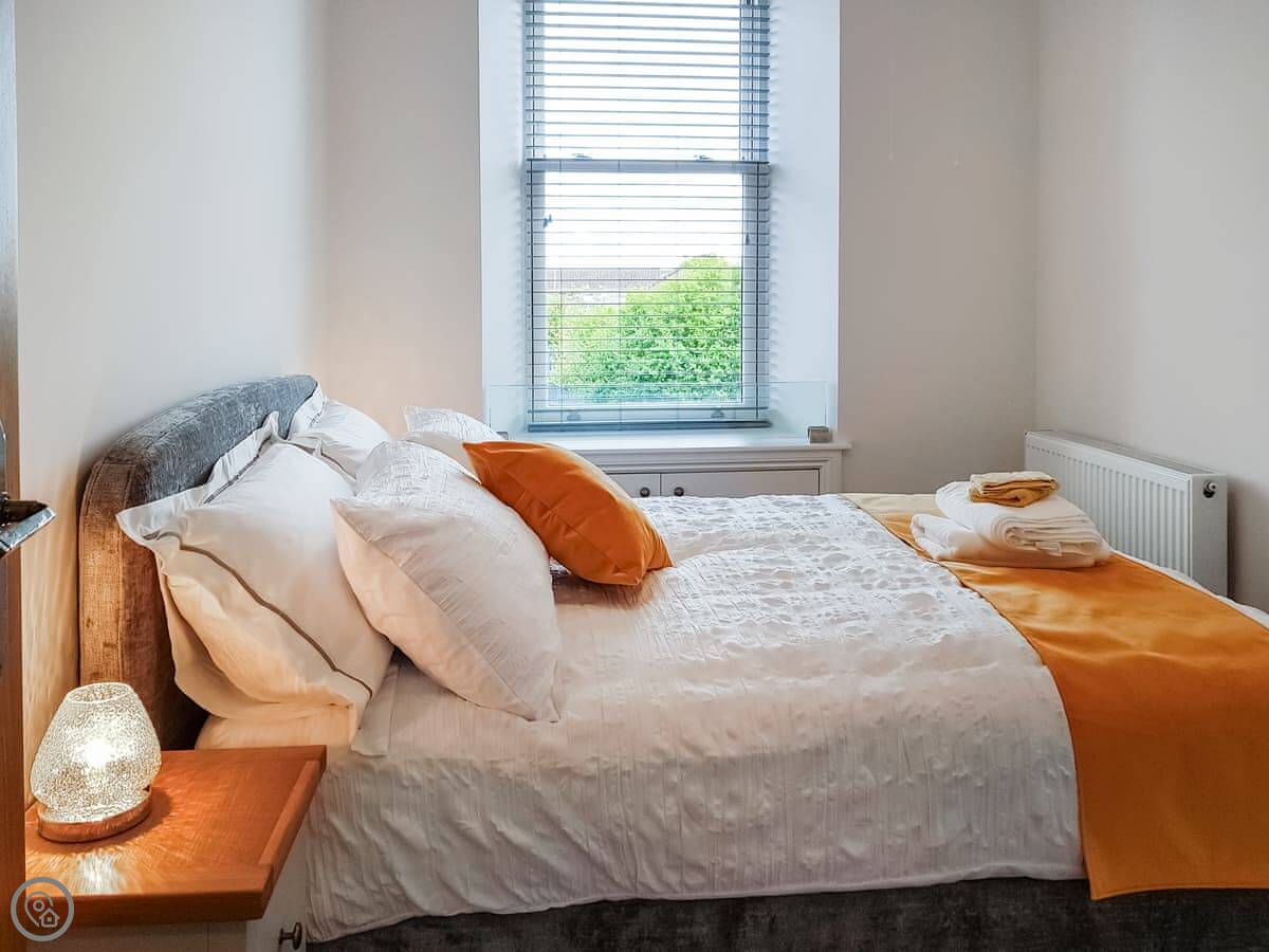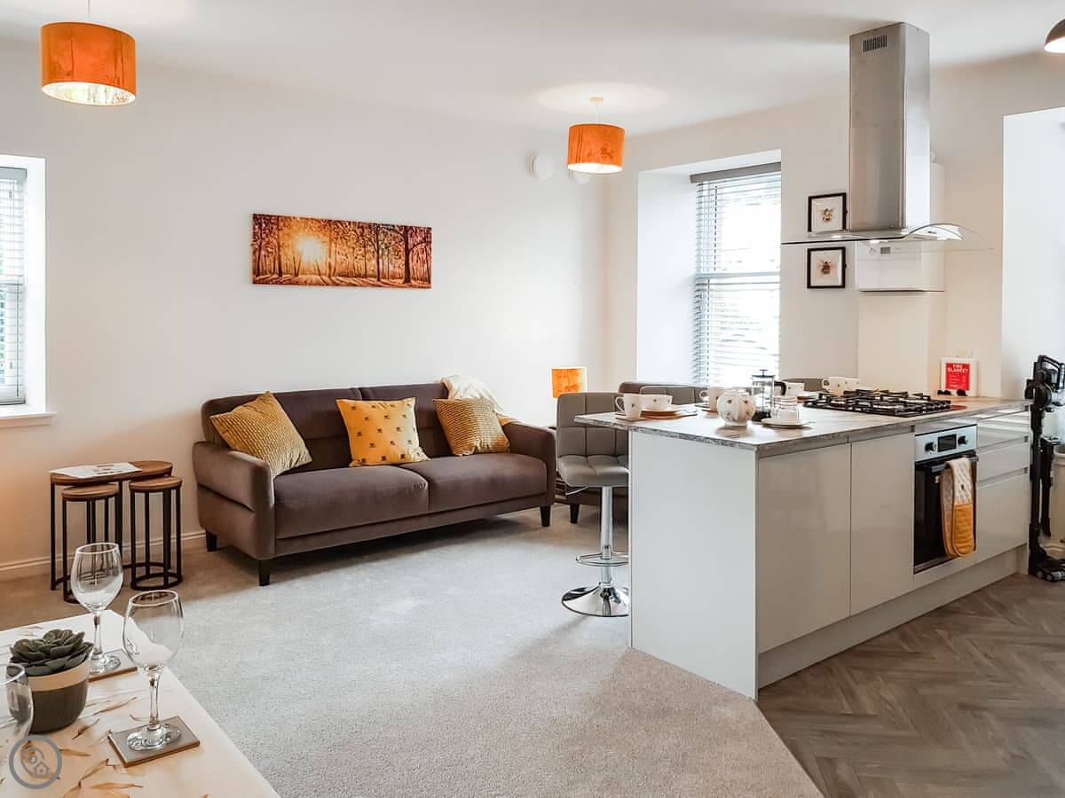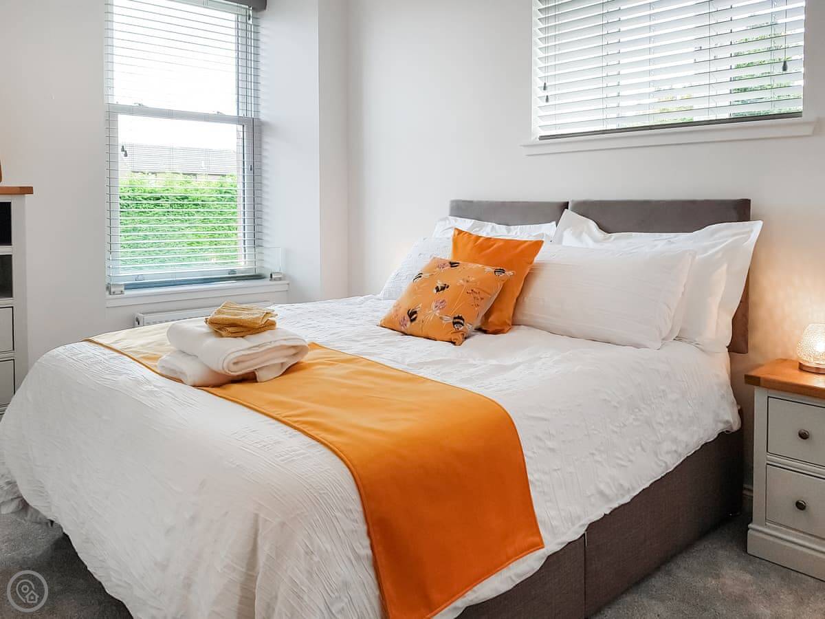 It sleeps four. One bedroom has a king-size bed that can be made into two singles if you ask beforehand. The other has a double. There's one bathroom with a shower. The living area is open plan with a dining space. It's a 4 Star place, so it's well-finished and comfortable.
