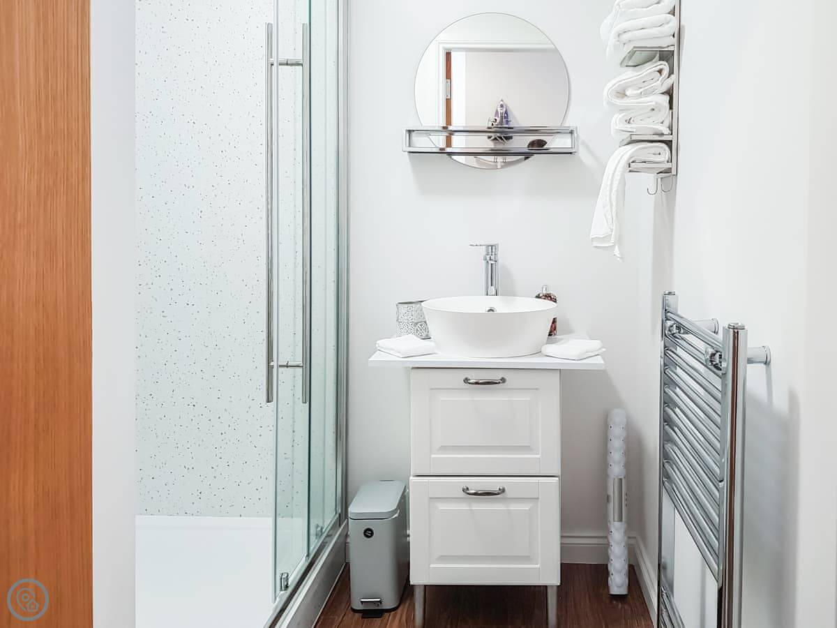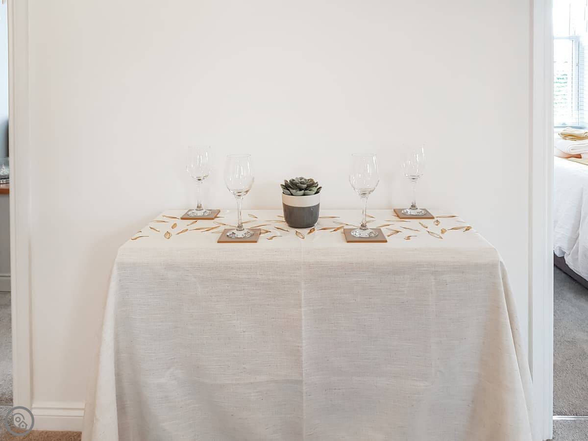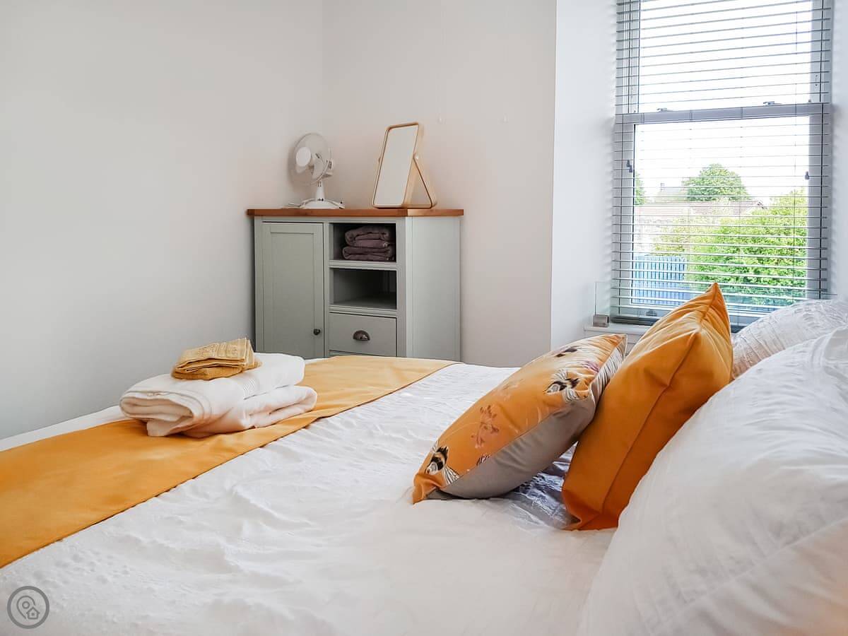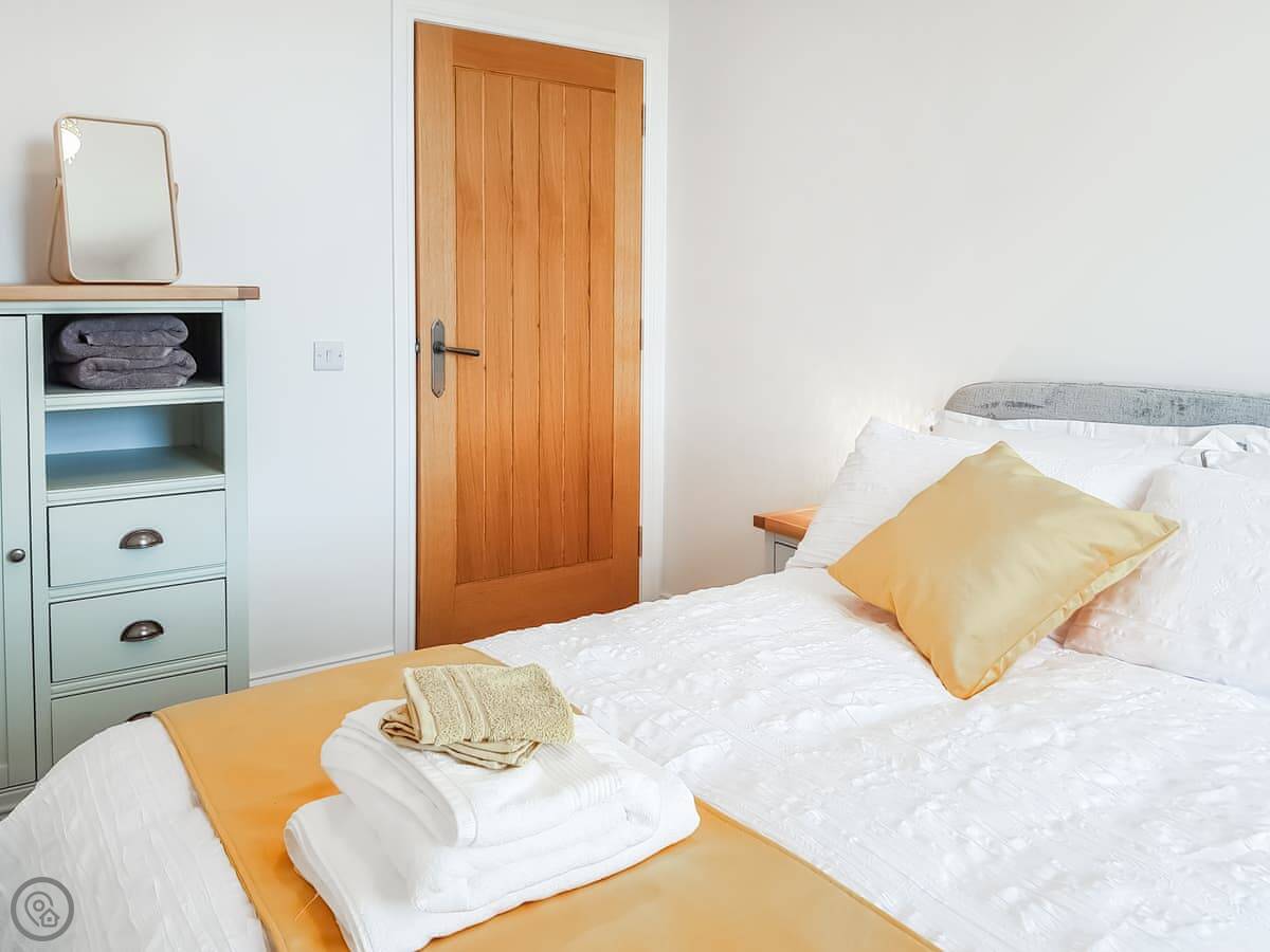 It sleeps four. One bedroom has a king-size bed that can be made into two singles if you ask beforehand. The other has a double. There's one bathroom with a shower. The living area is open plan with a dining space. It's a 4 Star place, so it's well-finished and comfortable.