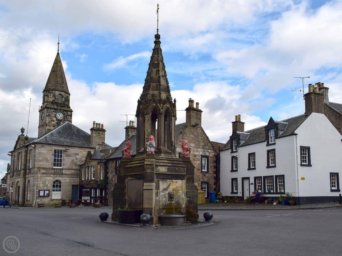 You're right in the village. Falkland Palace is a couple of minutes' walk. The village itself is lovely, just cobbled streets and old houses. There are a few shops, some good places to eat, and a couple of pubs. The Falkland Estate is on the doorstep for walks. It's proper woodland.