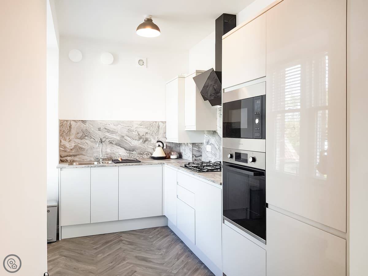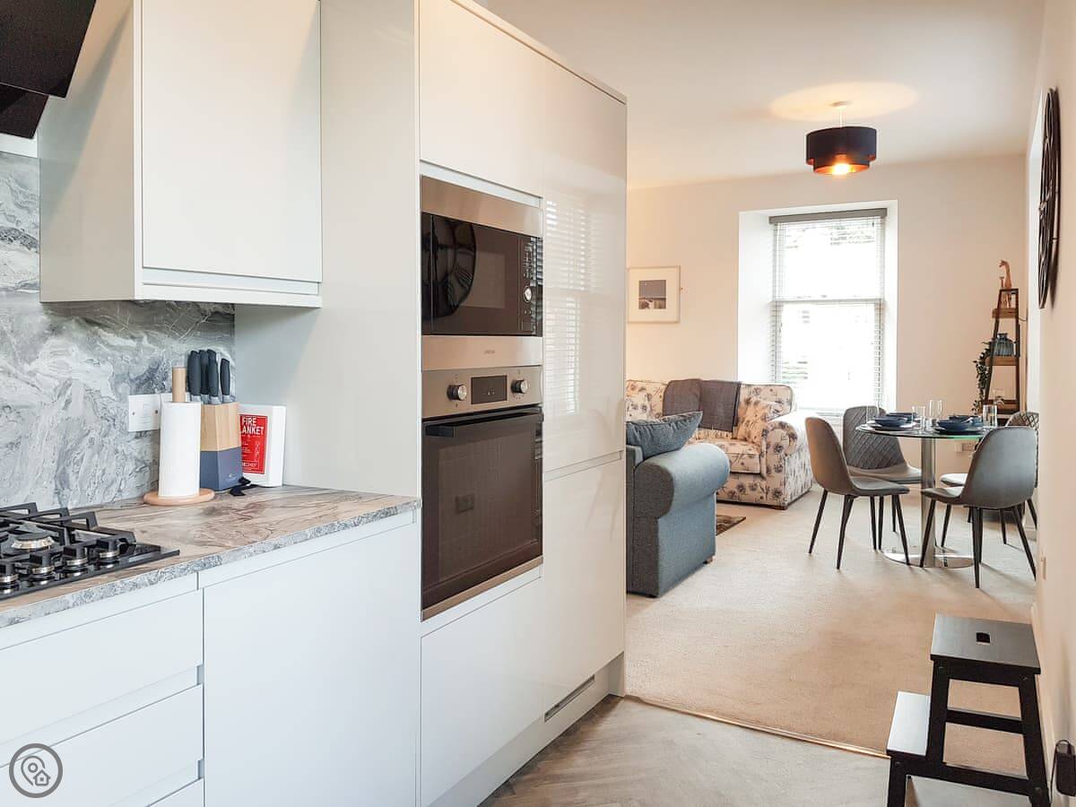 For facilities, you've got the basics: washing machine, dishwasher, TV, WiFi. Bedding and towels are included. There's parking. No pets, I'm afraid.