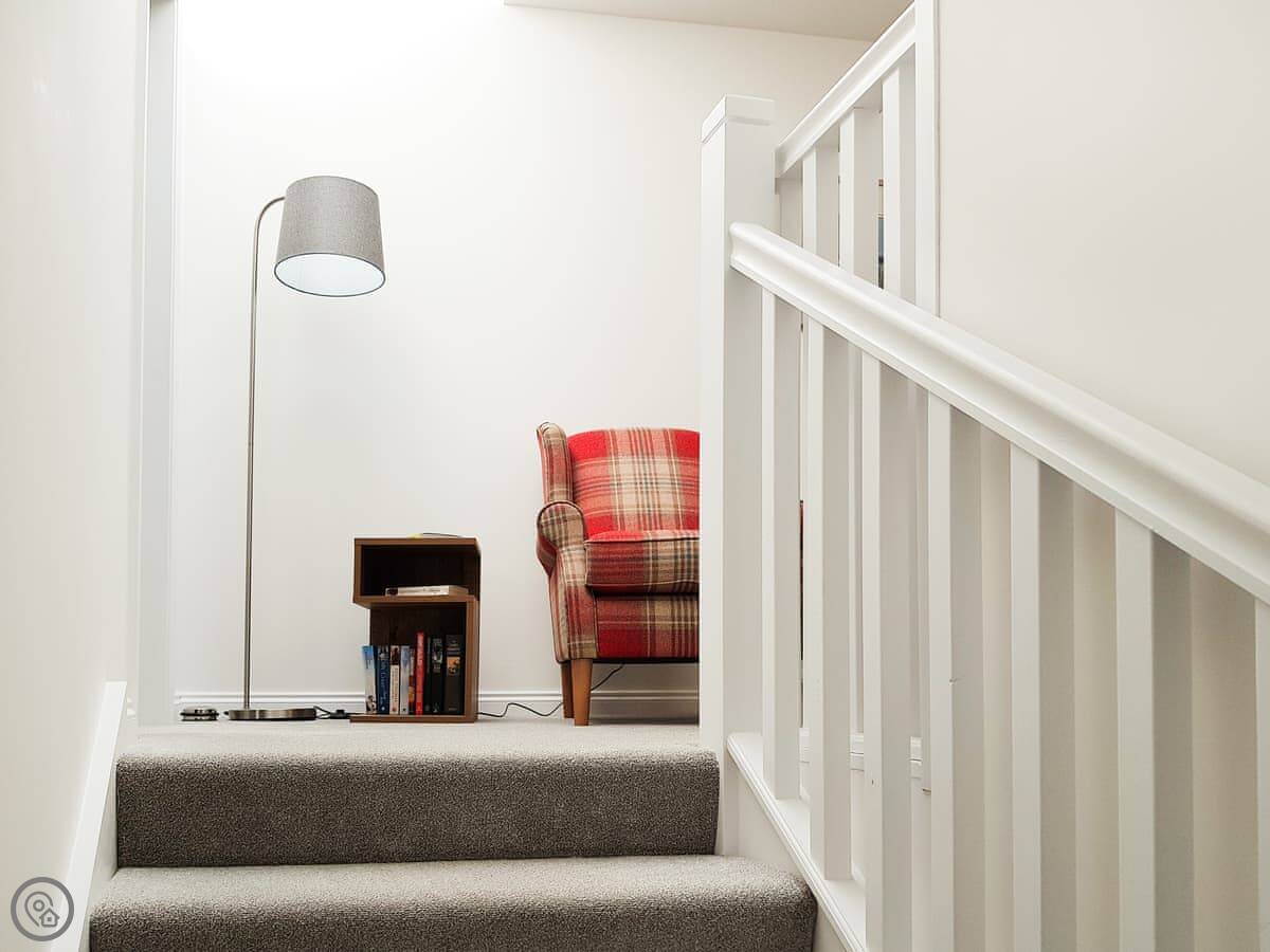Palace View is the top floor flat in the old Liquorstane House on the High Street in Falkland. It's one of three apartments in the building. The ground floor is a pharmacy now. The main stairwell in the entry hall is the original one and it's been done up nicely.