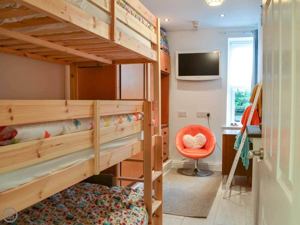 Retro Retreat can be found within the heart of Filey yet is only yards from the beach. With access to a private garden, this ground floor, garden apartment, which offers stair lift access, is ideal for a family of seven to explore this scenic coastal town. With a vintage 70s feel throughout, the apartment this holiday home is quite unique. Enter into the well presented kitchen/dining room. Open the cupboards and find a plethora of items from the 1970s, including a retro mid-winter crockery collection! There is plenty of worktop space from which to prepare delicious evening meals which can be enjoyed on the central dining table. For a quick morning coffee or afternoon snack there is also a small breakfast bar. Along the corridor are two beautiful and well-presented bedrooms with clever use of retro furniture from the 1970s. The bright and airy living rooms sits to the front of the property and offers a large Smart TV, deep-filled sofa and a selection of arm chairs offering the perfect spot for a relaxing evening in. The accommodation is finished with a further bedroom offering triple bunk beds and a Freeview TV. The apartment enjoys access to a large private garden where children can run free, collect fruit from the apple trees or enjoy a game of cricket.