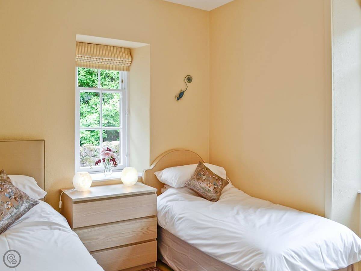 It sleeps six. Three bedrooms. There are actually three bathrooms as well, which is handy with a full house. One's a wet room. It's got a 4 Star rating, so it's comfortable and well equipped.