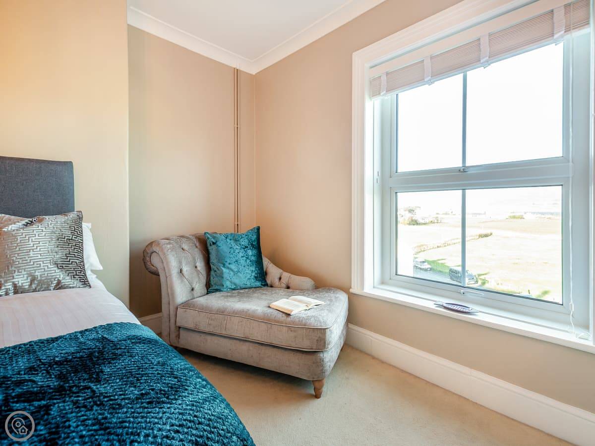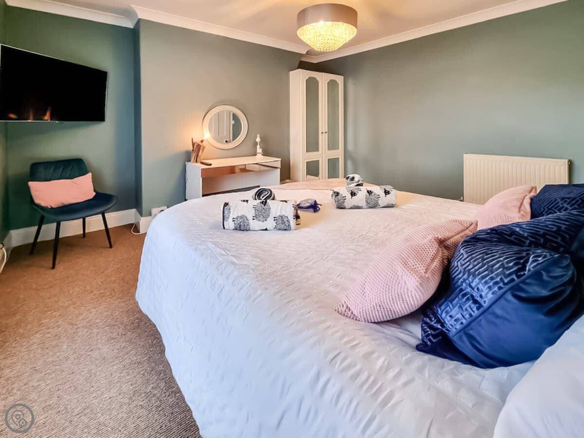 It sleeps fourteen, which is a lot. Seven bedrooms, five bathrooms. Three of the bedrooms have their own shower rooms. It's got a 4 Star rating, so it's well-equipped and in good order. It's a big house for a big group.