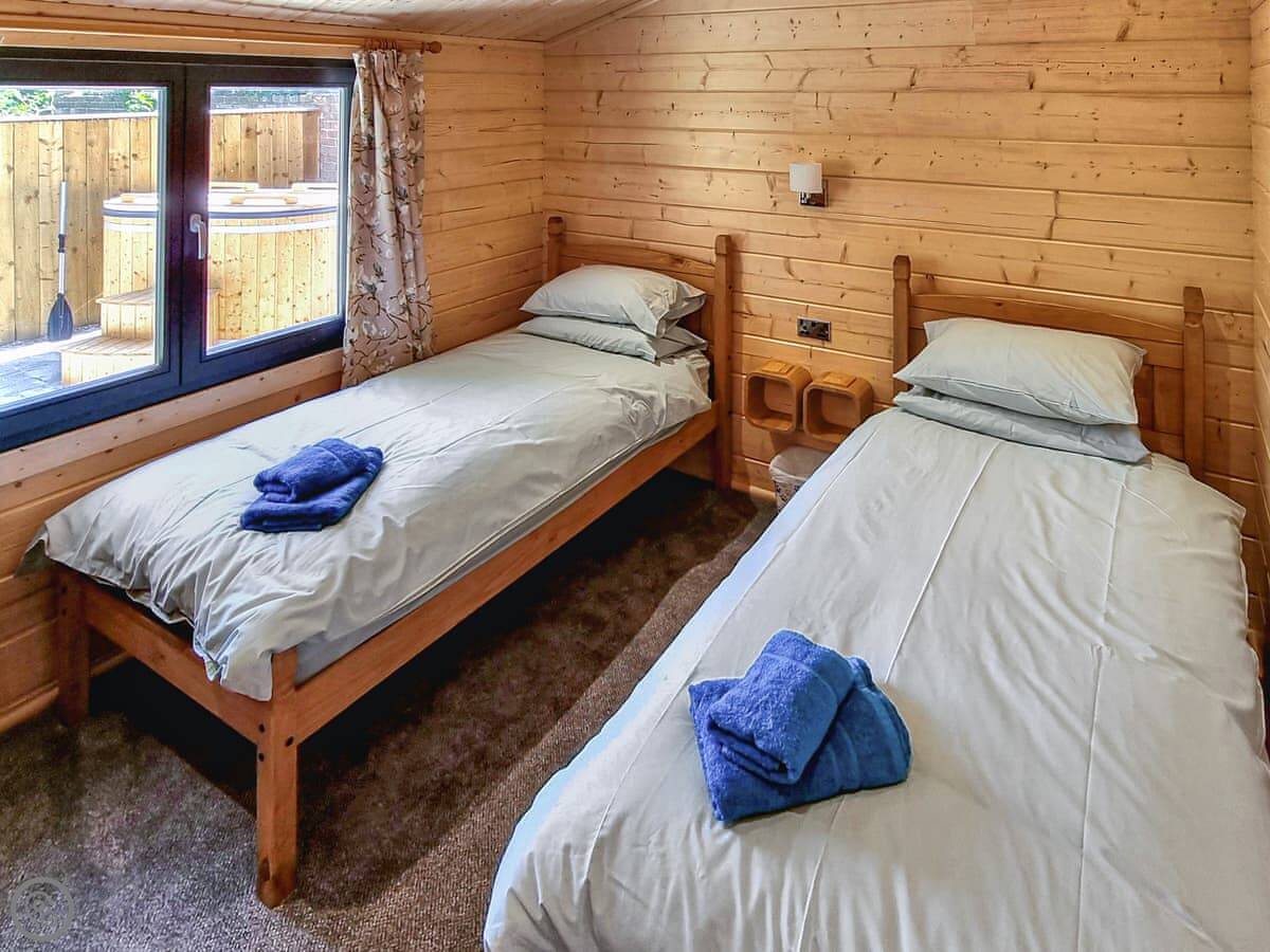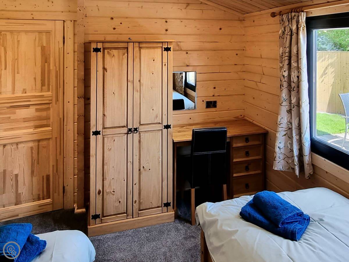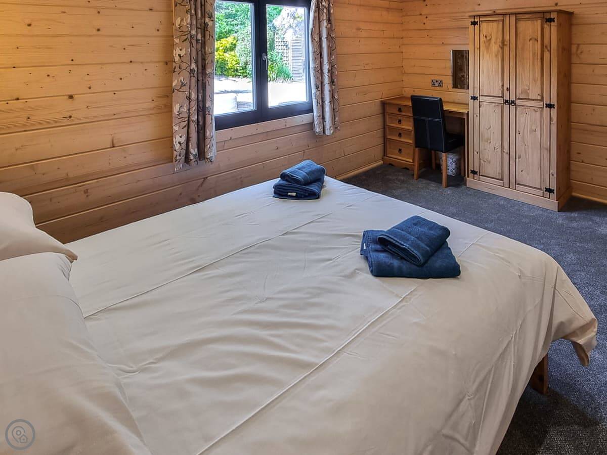 The lodge sleeps four, with two bedrooms on the ground floor and one bathroom. It has a 4 Star rating. The doors are wide, and there's a ramp to the front, so it's quite accessible.