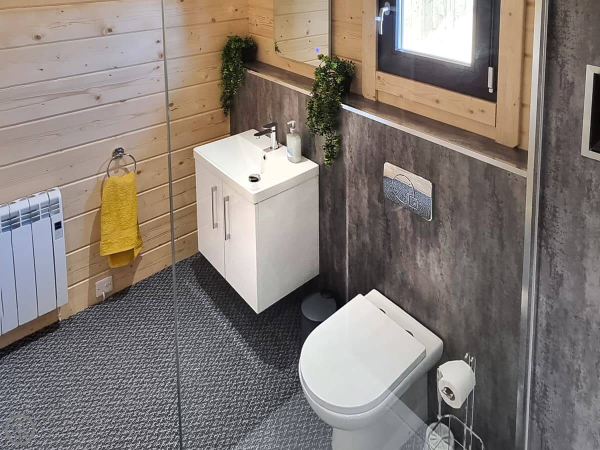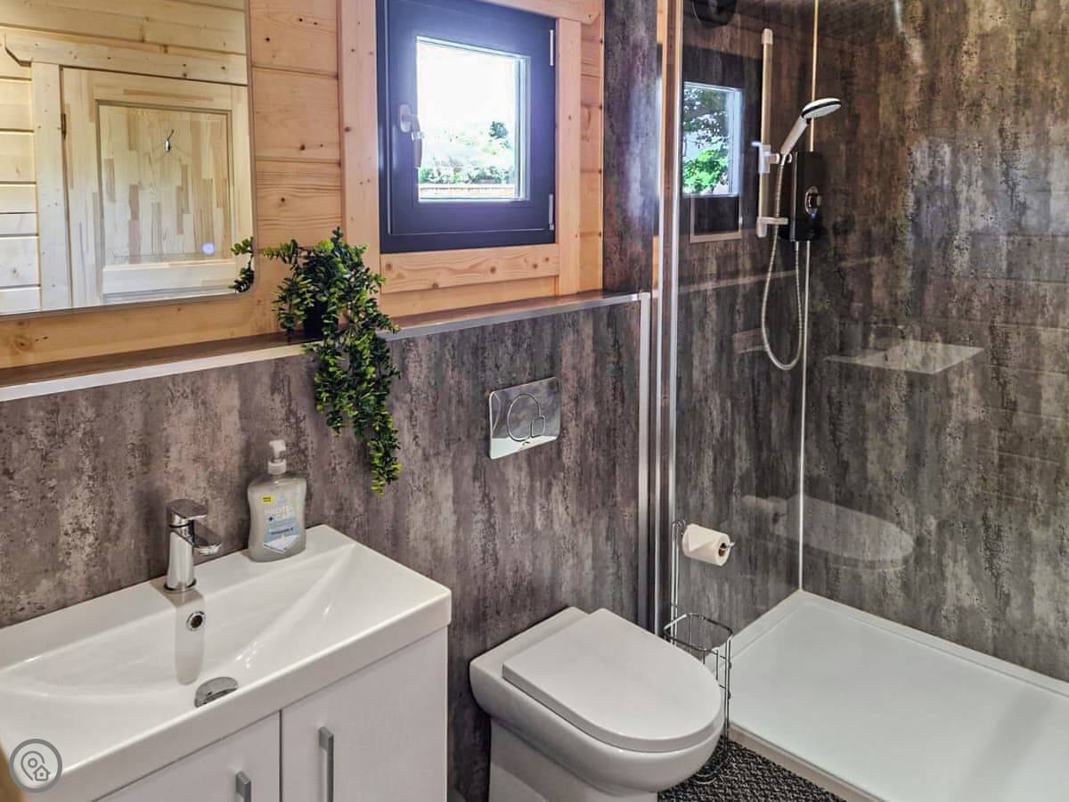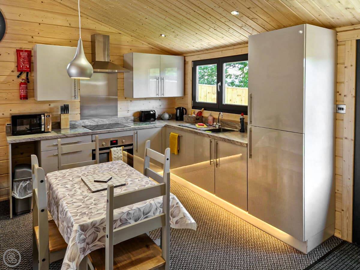 The lodge sleeps four, with two bedrooms on the ground floor and one bathroom. It has a 4 Star rating. The doors are wide, and there's a ramp to the front, so it's quite accessible.