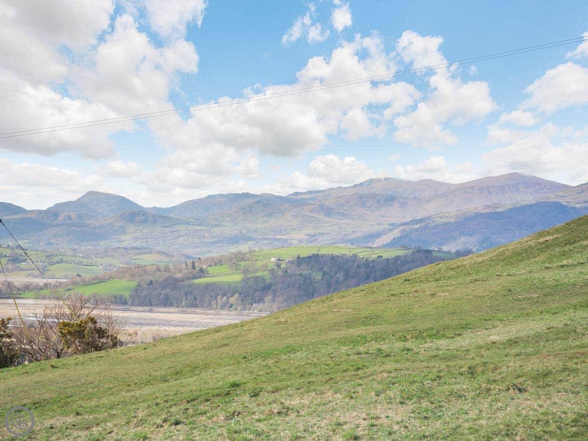 Blodfryn is our place in Bryn Pydew. It's detached, so no neighbours on the other side of the wall. You'll probably drive past it first, it's up a track off the lane. The views from the upstairs living room are good, you can see the sea from there.