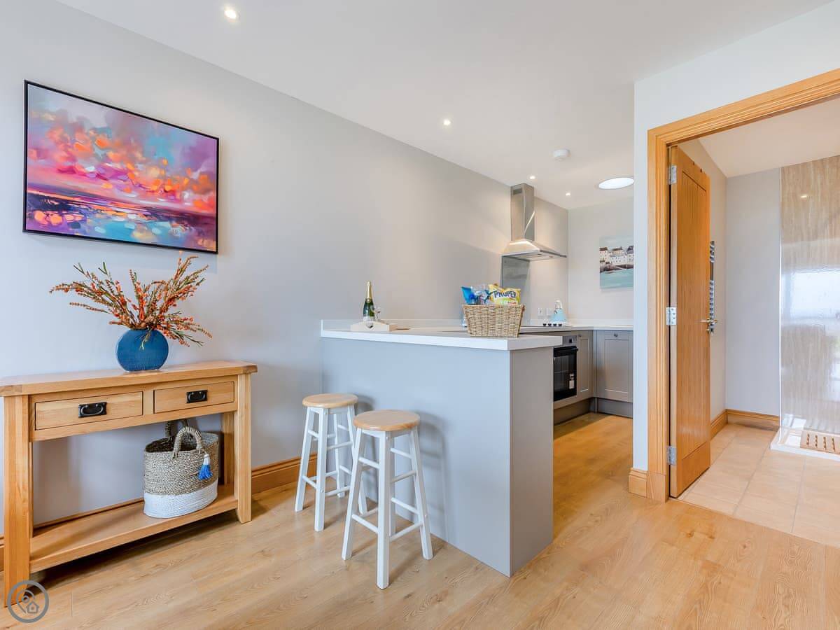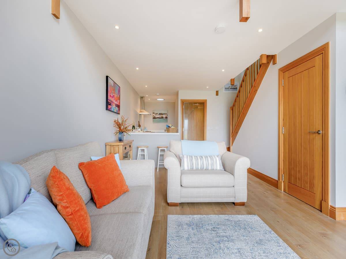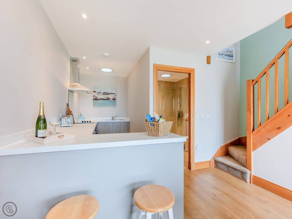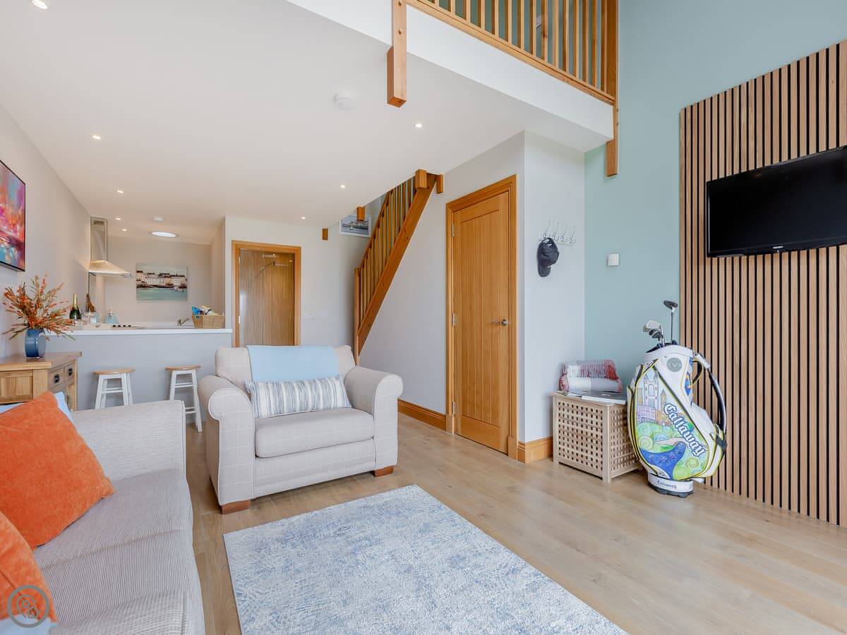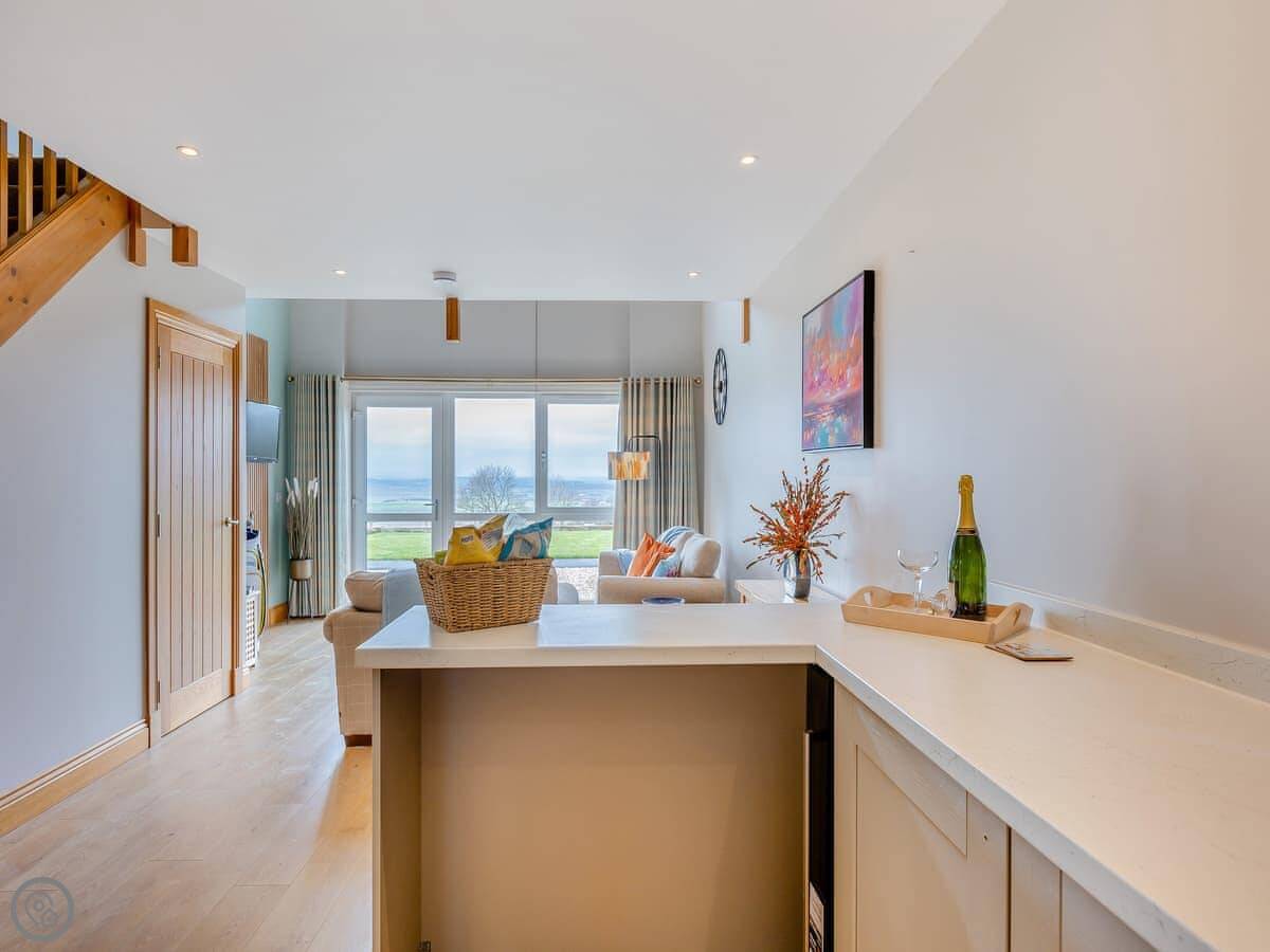 The Hayloft is situated in the beautiful peaceful countryside enjoying stunning views just 5 miles from the centre of St Andrews. Recently converted from an old barn, The Hayloft is one of six spacious and gorgeous properties. Each property has its own private entrance and looks out over the far-reaching uninterrupted views over the Eden Estuary and beyond. Set within the grounds of Knockhill Farm, The Hayloft accommodates two guests, has a spacious open plan living and kitchen area, a flatscreen TV and free Wi-Fi. The luxury bathroom is situated on the ground floor, with a spacious walk-in shower, heated towel rail and demister mirror, shaving and electric toothbrush points and complimentary toiletries. The bedroom is located on the mezzanine level accessed by stairs, the super king size bed can be changed into two singles on request. The Hayloft offers outstanding views over the rolling countryside. As with all the cottages it comes with under floor heating. There is a large separate dining room with kitchen that can be hired for special occasions and large family gatherings.