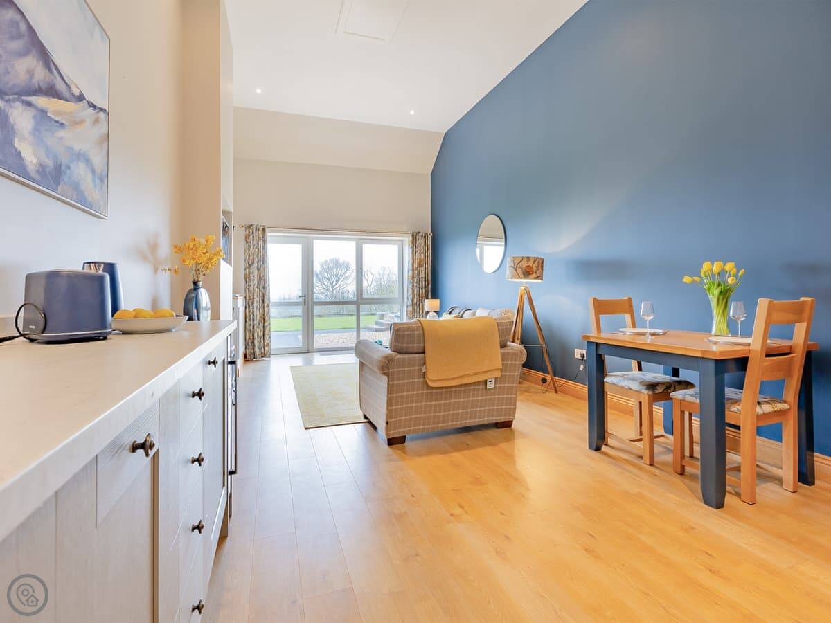 The Byre is situated in the beautiful peaceful countryside enjoying stunning views just 5 miles from the centre of St Andrews. Recently converted from an old barn, The Byre is one of six spacious and gorgeous properties. The Byre offers ground floor accommodation for two guests has a lovely lounge area and open plan kitchen and dining area. The bedroom offers a comfy super kingsize bed with quality bed lining and furnishings and a luxury en-suite walk-in shower, complimentary toiletries, heated towel rail and de-mister mirror with shaving and electric toothbrush point. The Byre has its own private access and has Wi-Fi and air source underfloor heating. There is a large separate dining room with kitchen that can be hired for special occasions and large family gatherings.