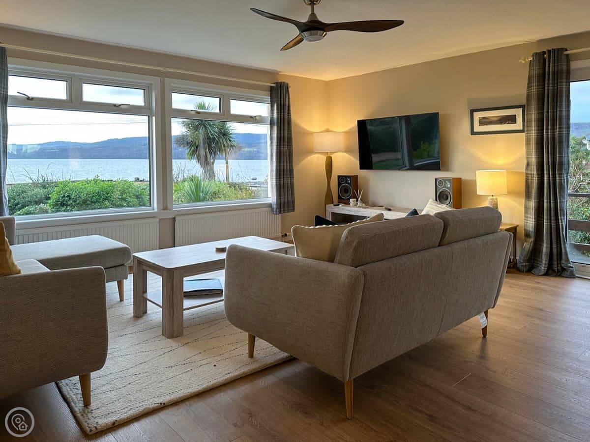 Tides Reach is a bungalow on the edge of Lamlash on Arran. It's detached, so you're on your own. The main thing is the view. You look straight out across the bay to Holy Isle. Every room at the front gets that view.