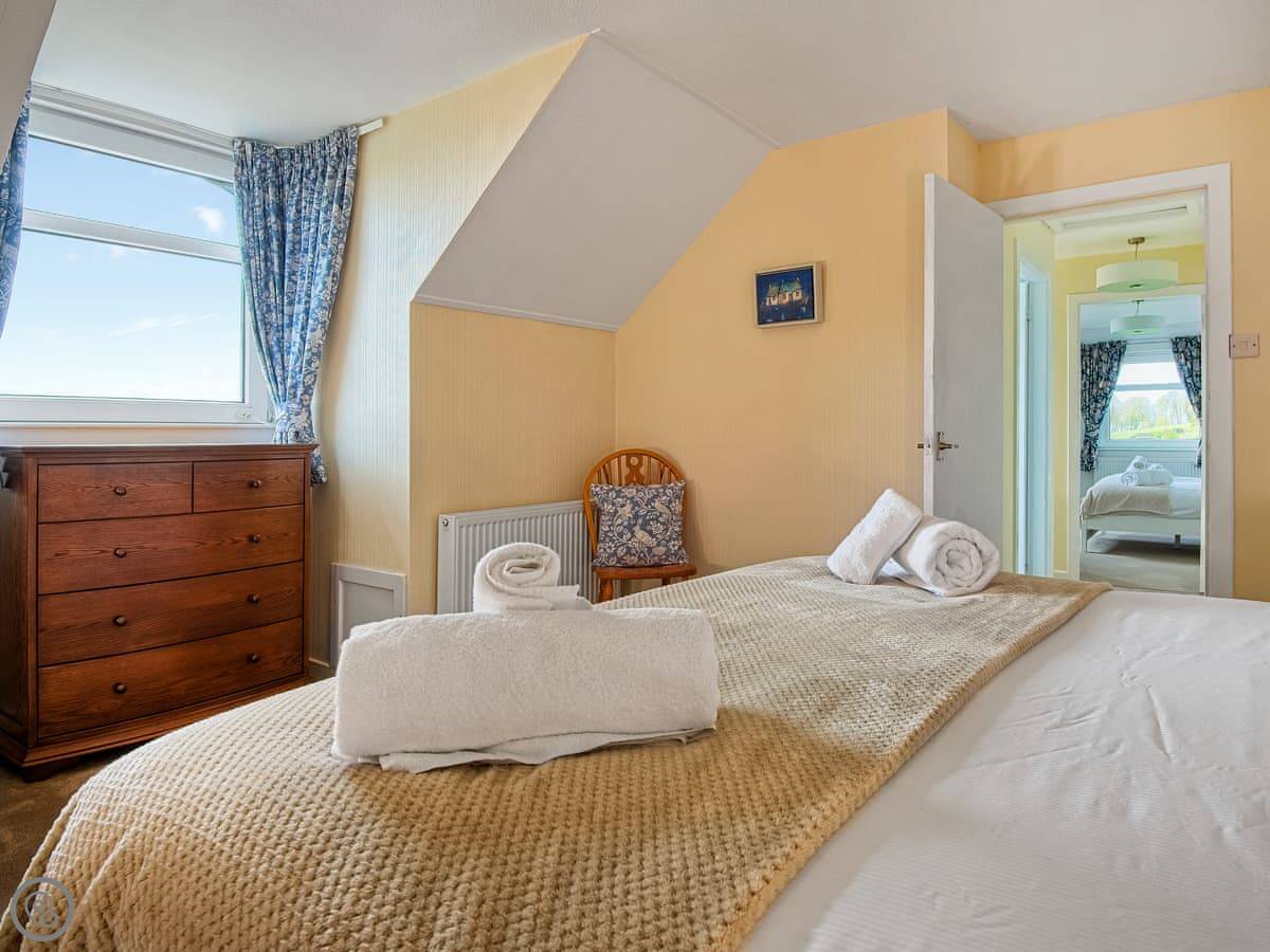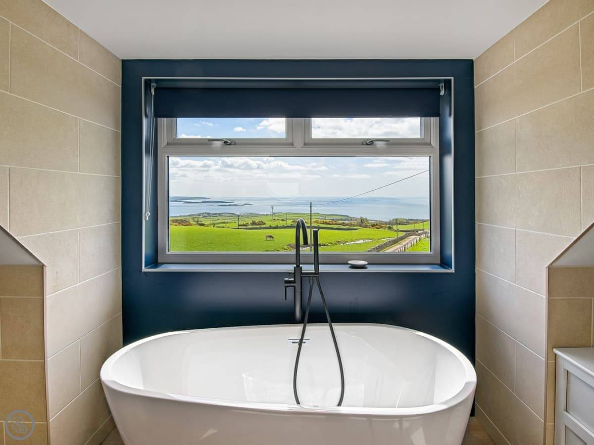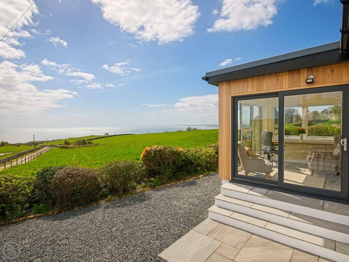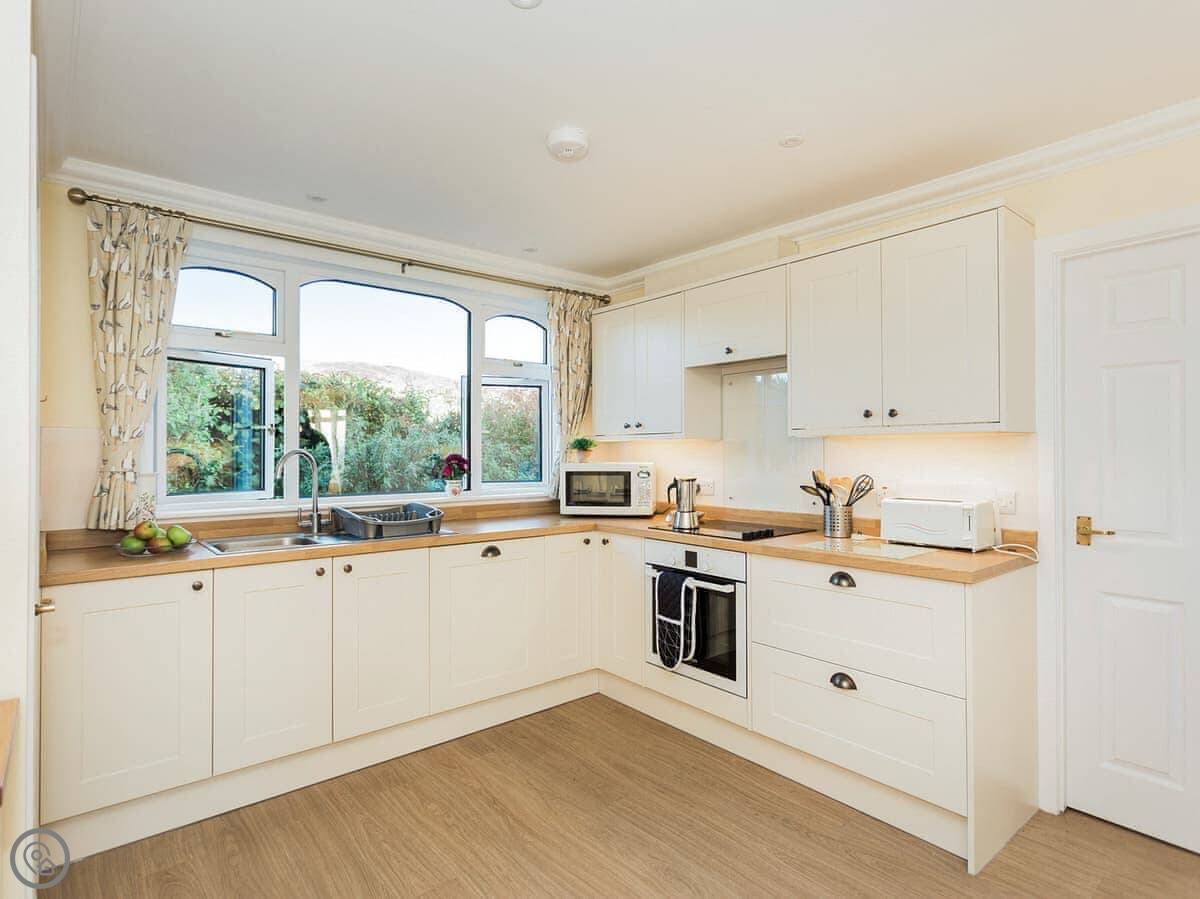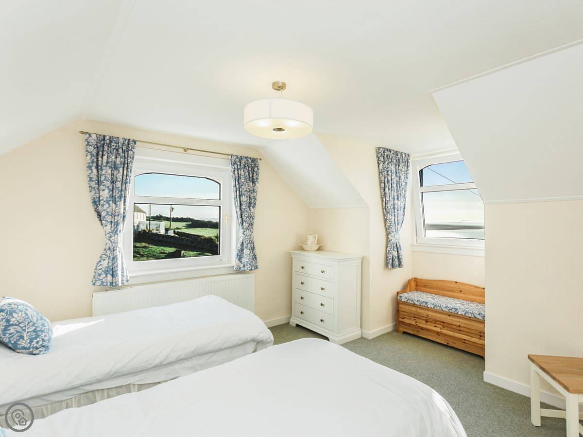 The main thing is the view. You get it from the living room, the sun room, and all the bedrooms. There's a wood burner for cool evenings. The kitchen has everything you'd need. The stairs are the normal cottage sort.