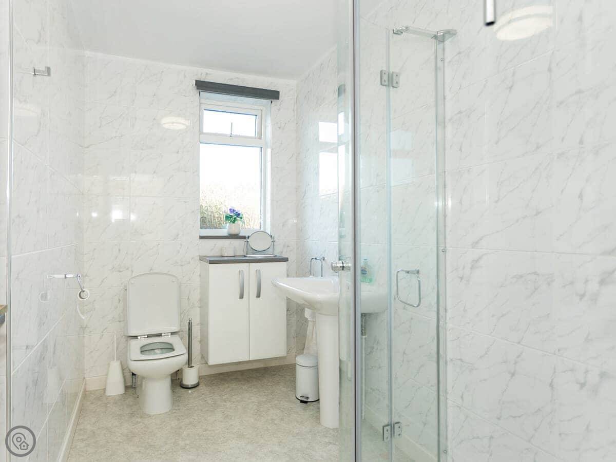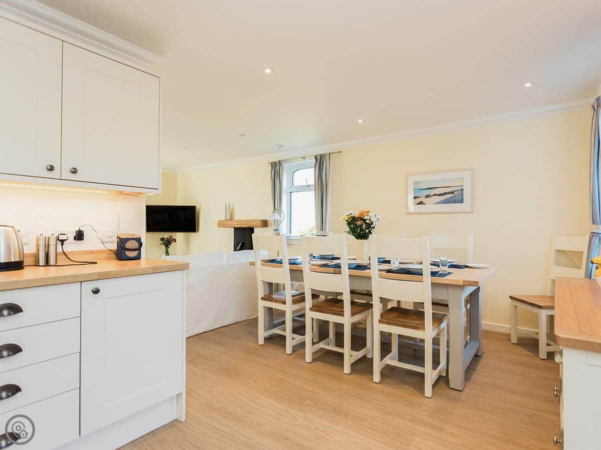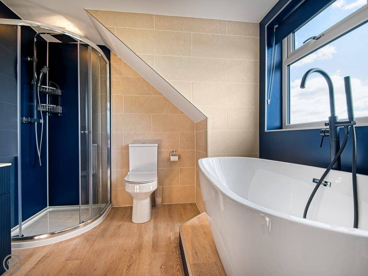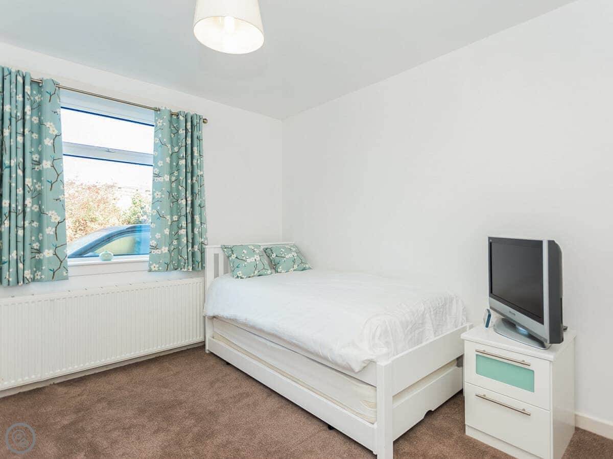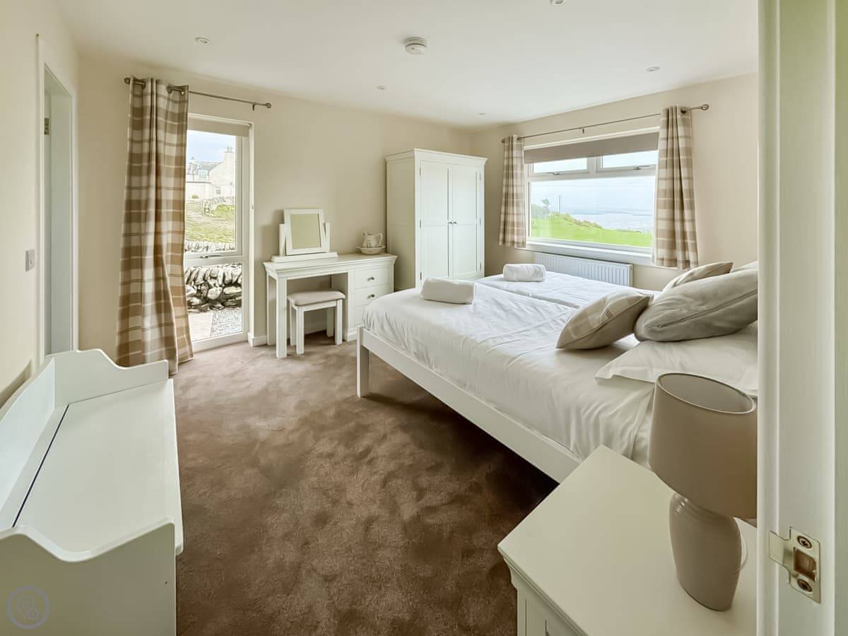 The main thing is the view. You get it from the living room, the sun room, and all the bedrooms. There's a wood burner for cool evenings. The kitchen has everything you'd need. The stairs are the normal cottage sort.