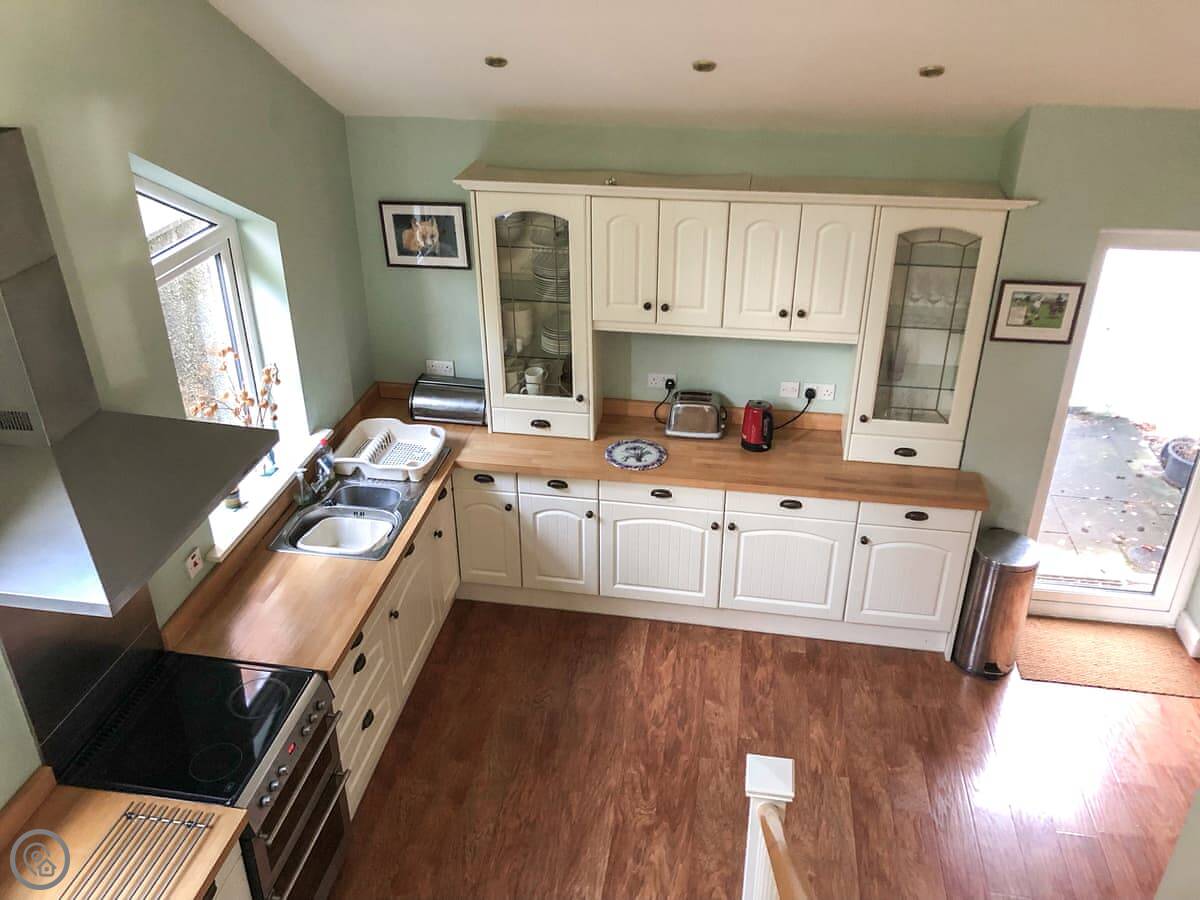 The property is mainly on one level with some internal steps and a galleried dining room. There’s a double bedroom with en-suite shower which then leads to the conservatory - a pleasant place to sit and watch the birds in the garden. There’s a kingsize bedroom with striking fell views, and the third bedroom features a double bed and a bunk bed, this is great if you have a family or maybe a few children who like to sleep in the same room. Note the maximum number of guests is 6, though this flexibility means guests can choose what works for them. The family bathroom comes with a bath and heated towel rail, and the living room offers comfortable easy seating and an open fire.