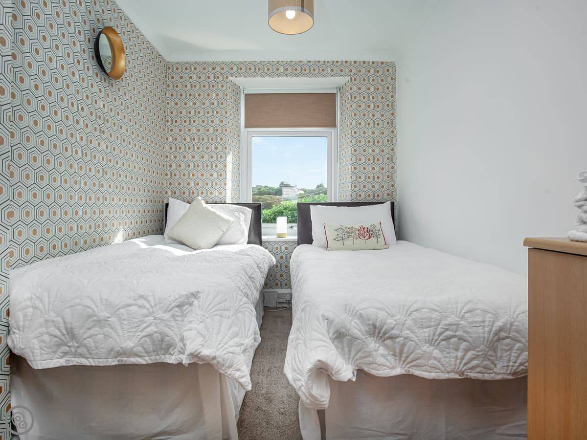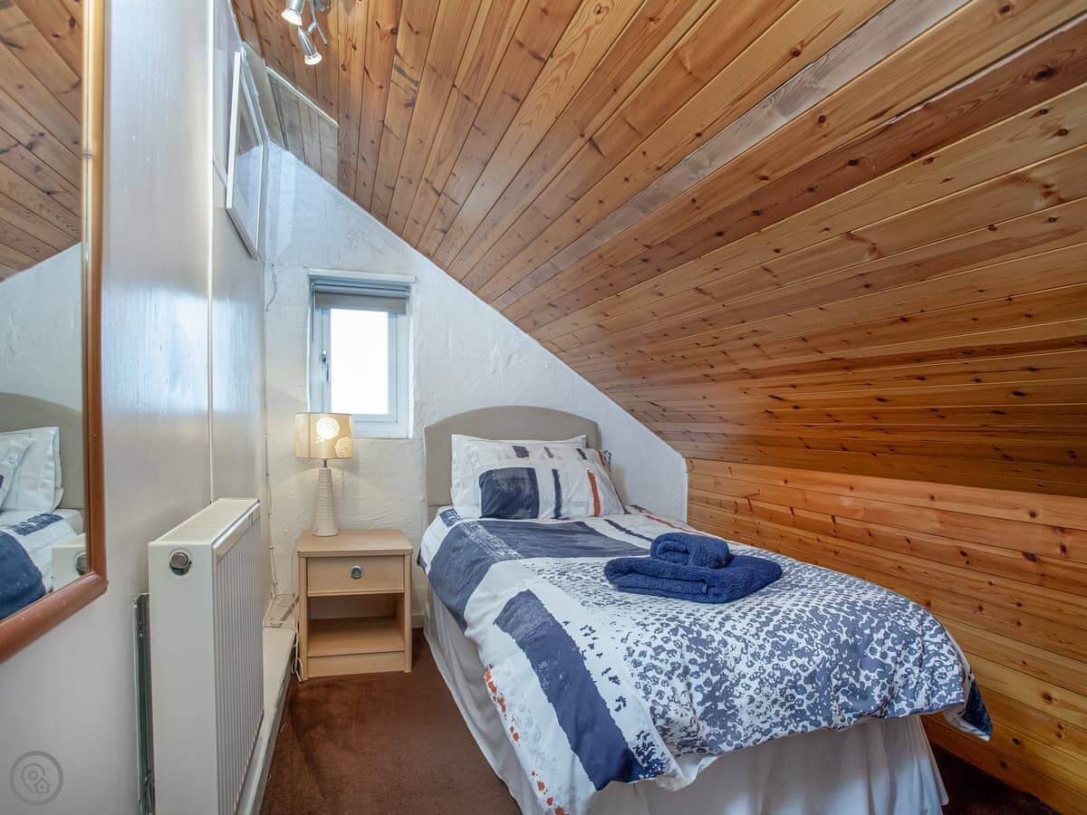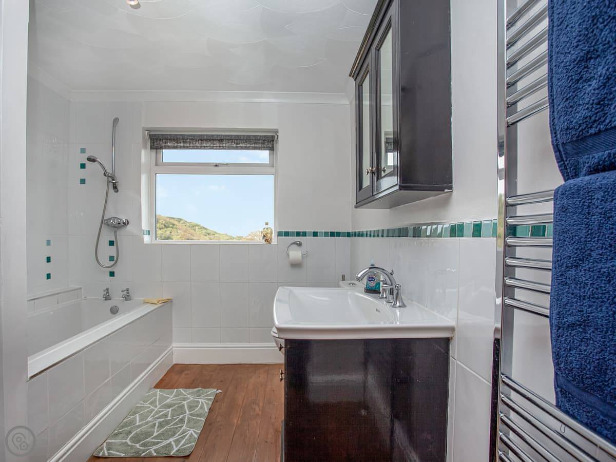 It sleeps seven people in four bedrooms. There are two bathrooms. One is an en-suite shower room off the main bedroom. The other has a bath and a separate shower. It's a 3 Star place, so it's comfortable and clean but not luxurious.