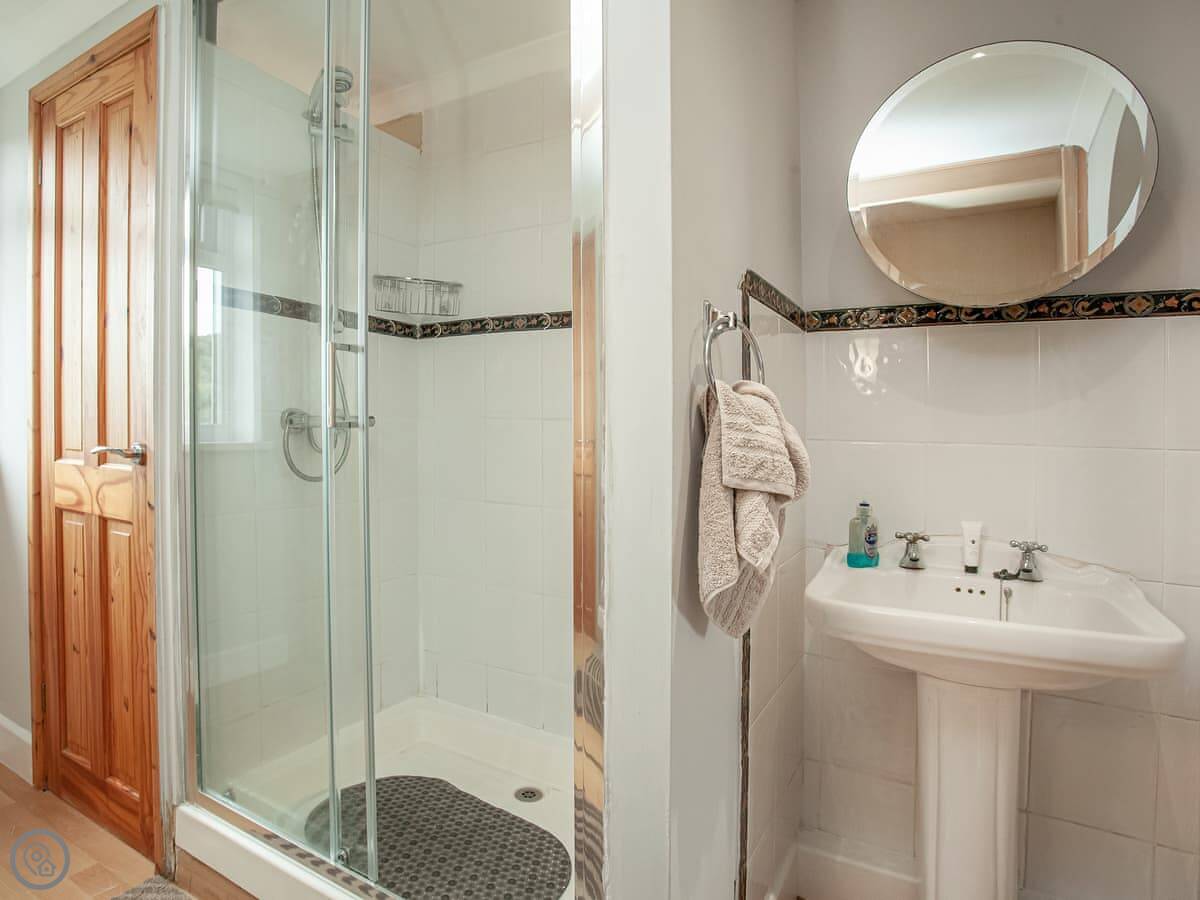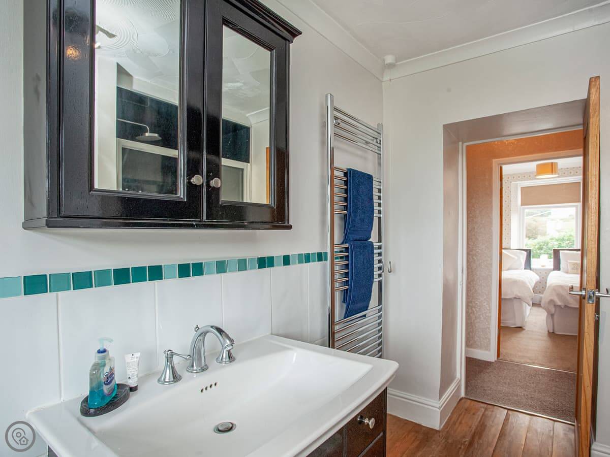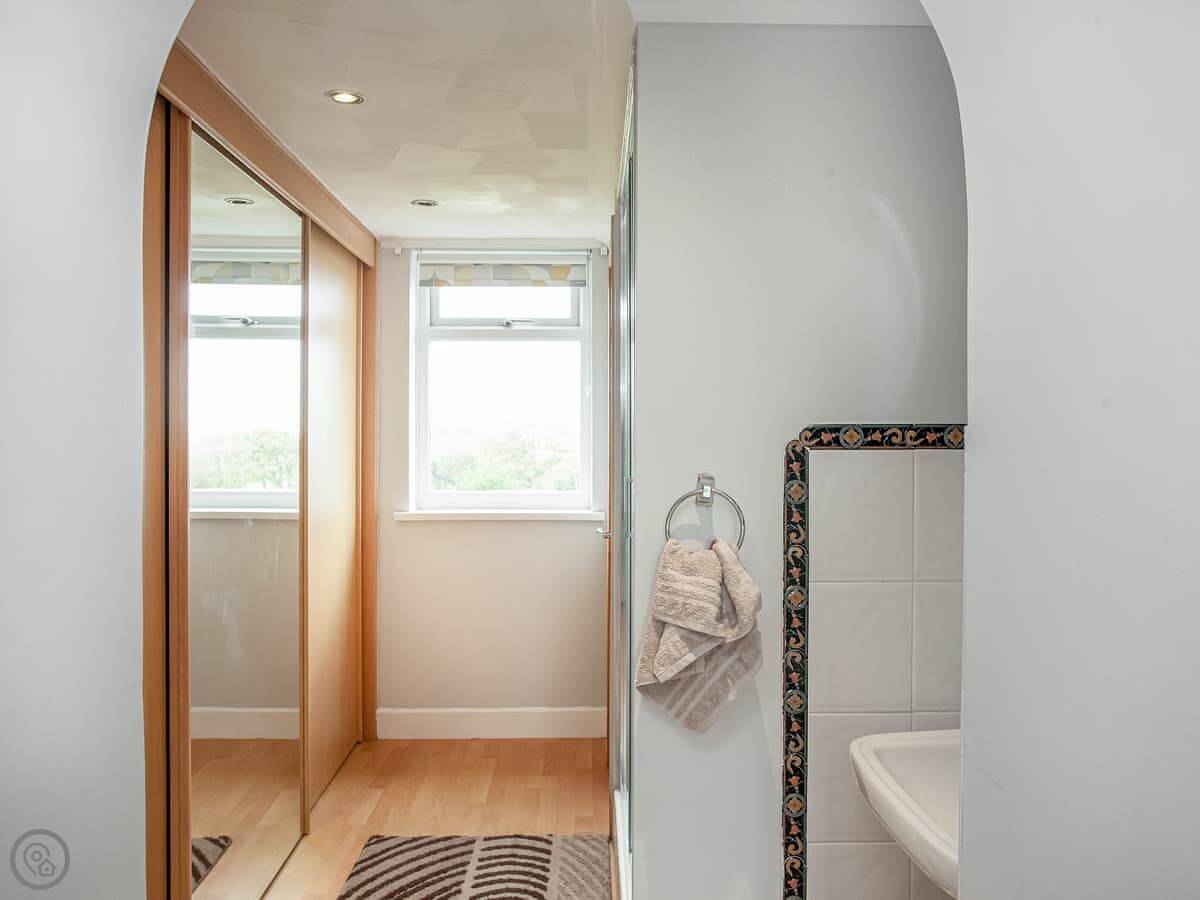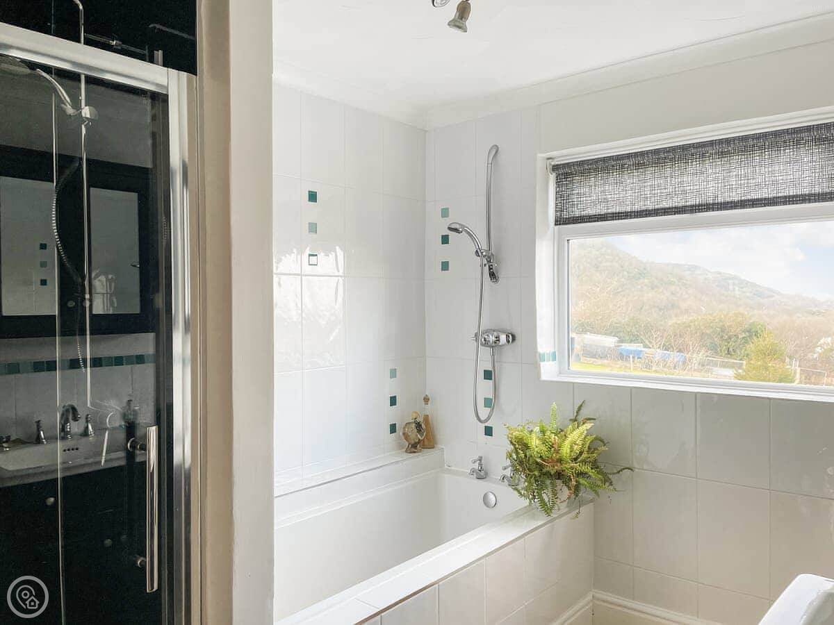 It sleeps seven people in four bedrooms. There are two bathrooms. One is an en-suite shower room off the main bedroom. The other has a bath and a separate shower. It's a 3 Star place, so it's comfortable and clean but not luxurious.