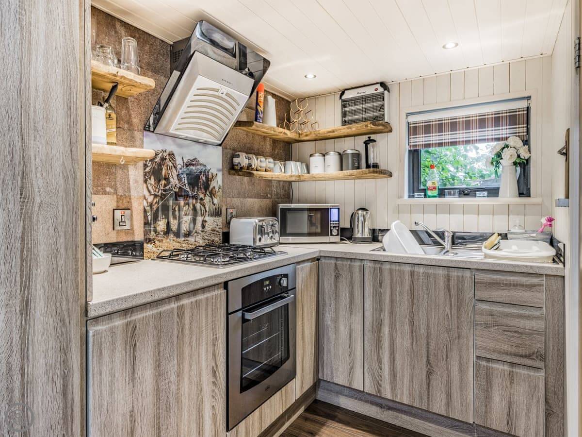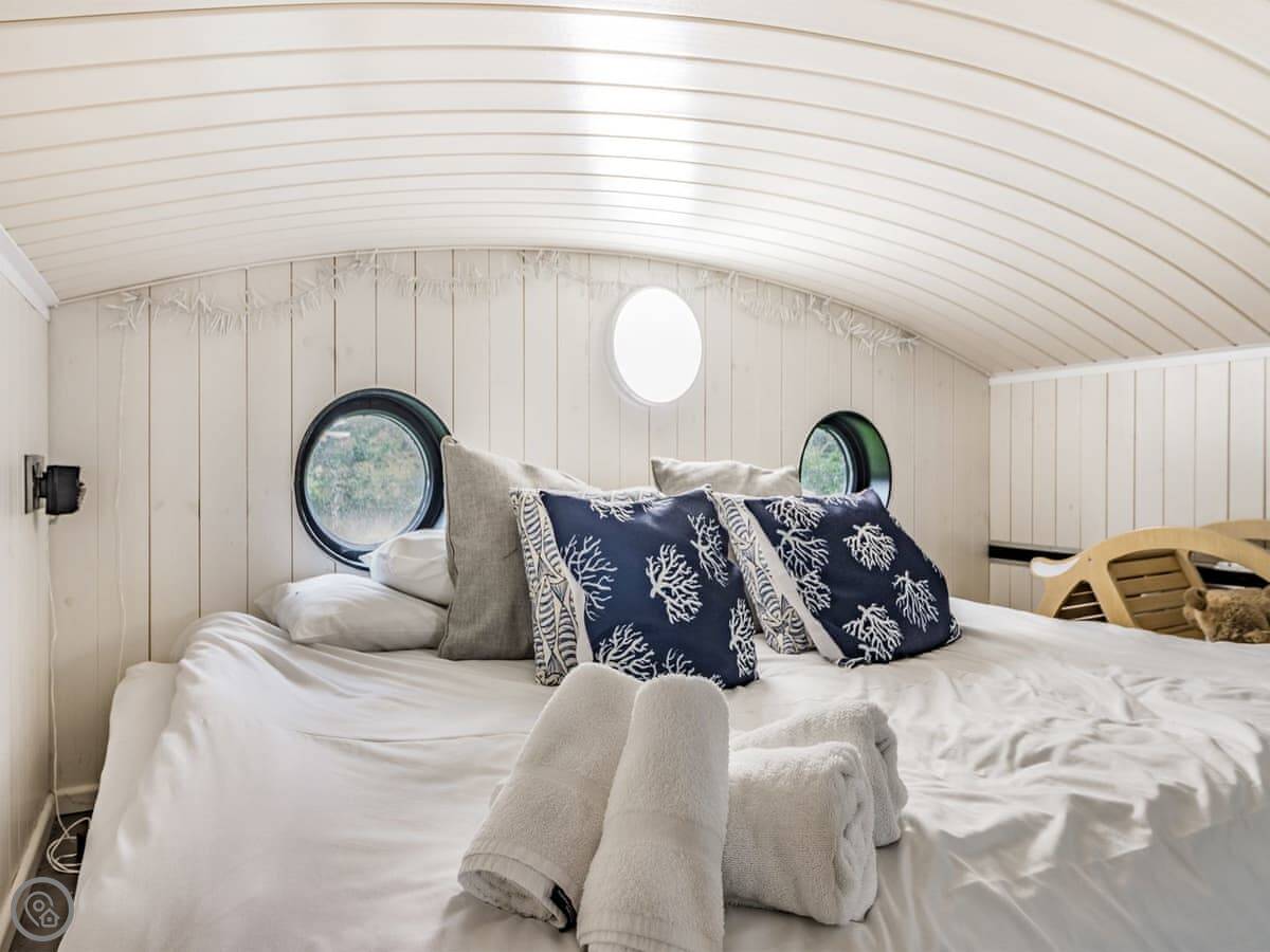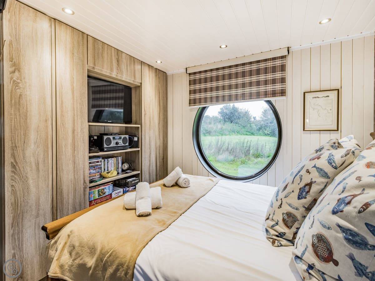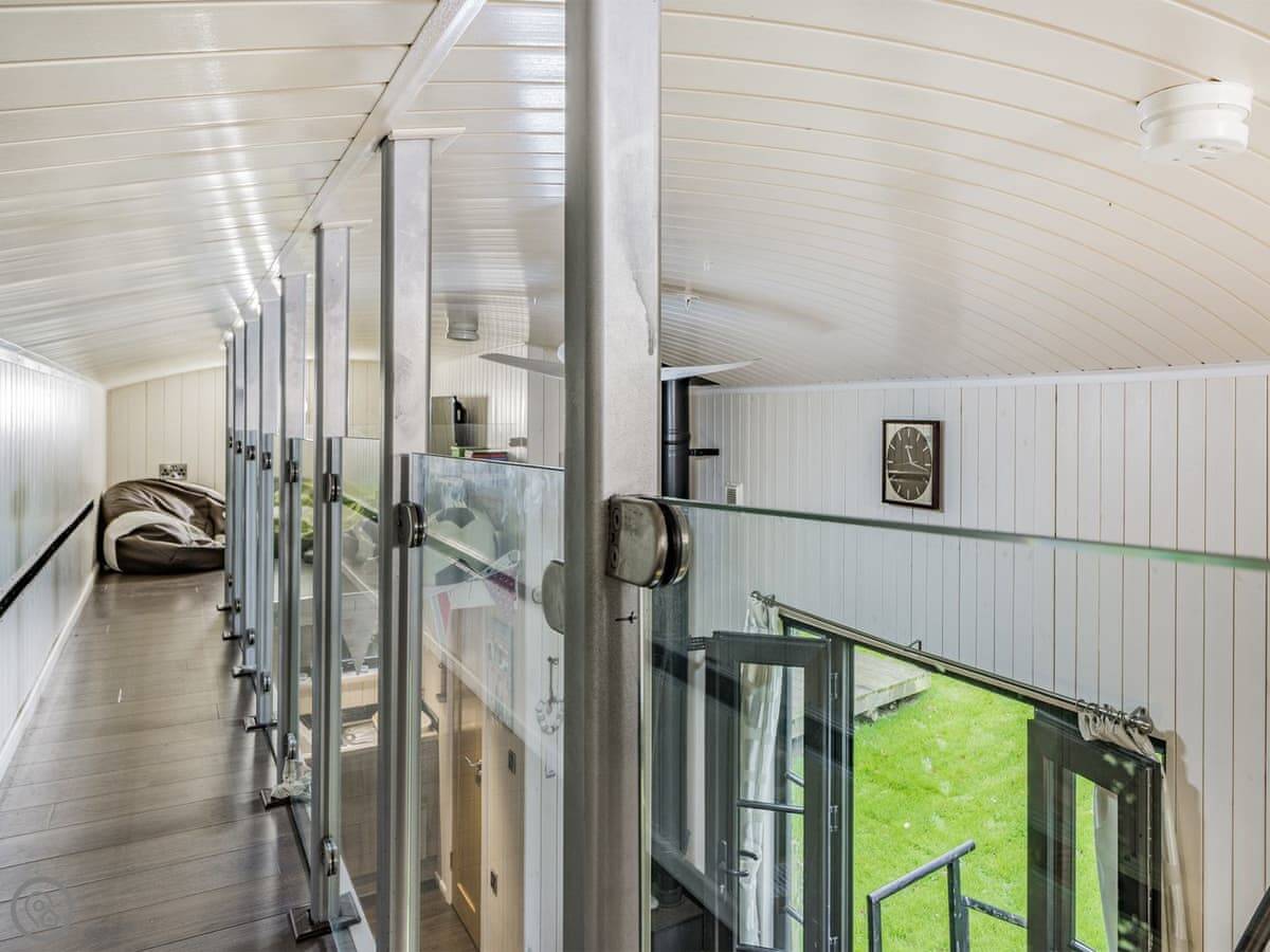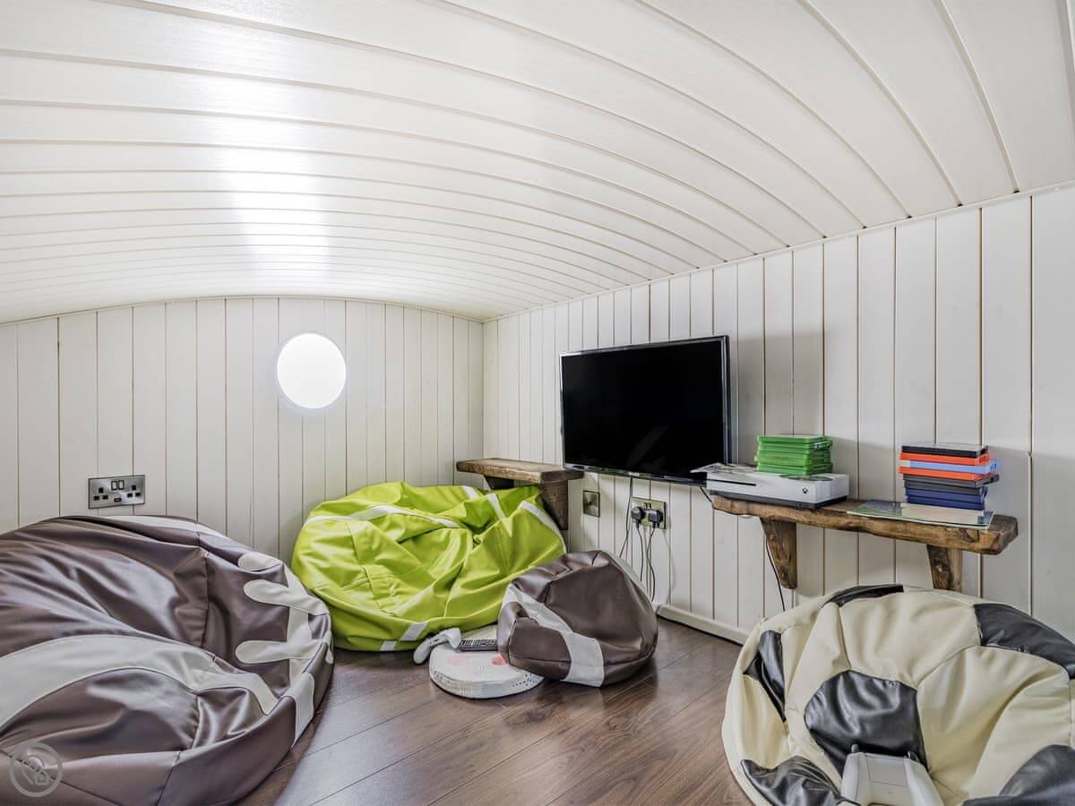 Oak Tree Lodge is a quirky ’one of a kind’ holiday accommodation, nestled away in rural surroundings while still being just a few miles from Dartmouth with its town and nearby beaches. The property sleeps up to four guests in two double bedrooms. This comfortable boutique lodge has a separate upstairs ’cool kids only’ area complete with Xbox and games. The adjoining covered outside area provides extra space and is perfect for al fresco dining; pull up a chair and grab a rug to enjoy an outdoor fire and watch the stars. The downstairs of the lodge benefits from open-plan living space with double bed, sofa seating and cosy wood burner. The kitchen area is fully equipped with all guests could need to rustle up a meal. There is also a door leading from the kitchen area into the shower room with underfloor heating. The spiral staircase leads up to a galleried floor with another double bed and glass balcony, leading across to a separate snug area with TV, games and beanbags for the children to enjoy.