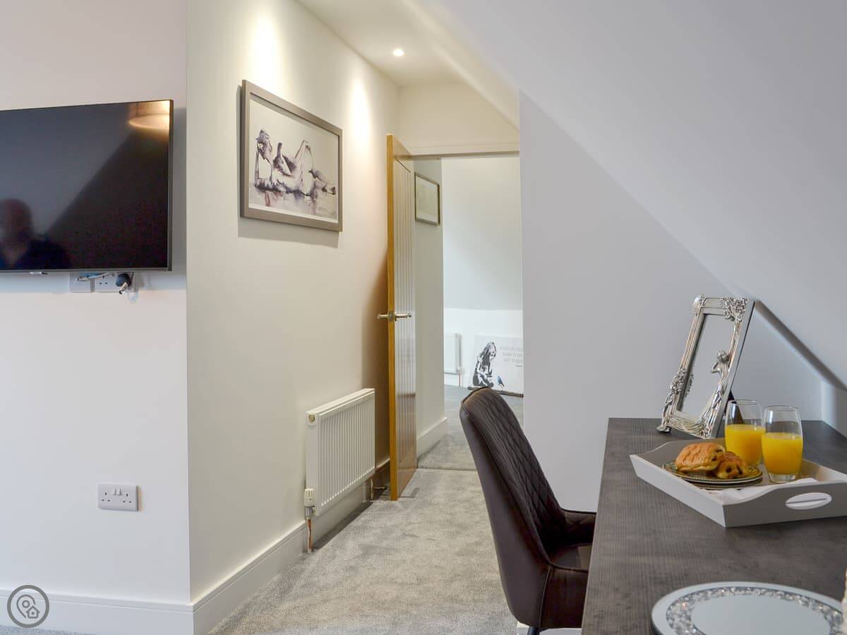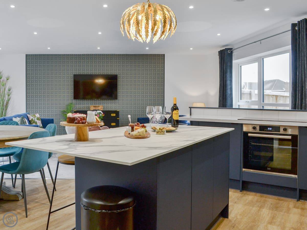 It sleeps six. Three bedrooms, one bathroom. It's a five star property, so it's quite smart inside. Everything is open plan on the ground floor. The entrance is ramp accessible.
