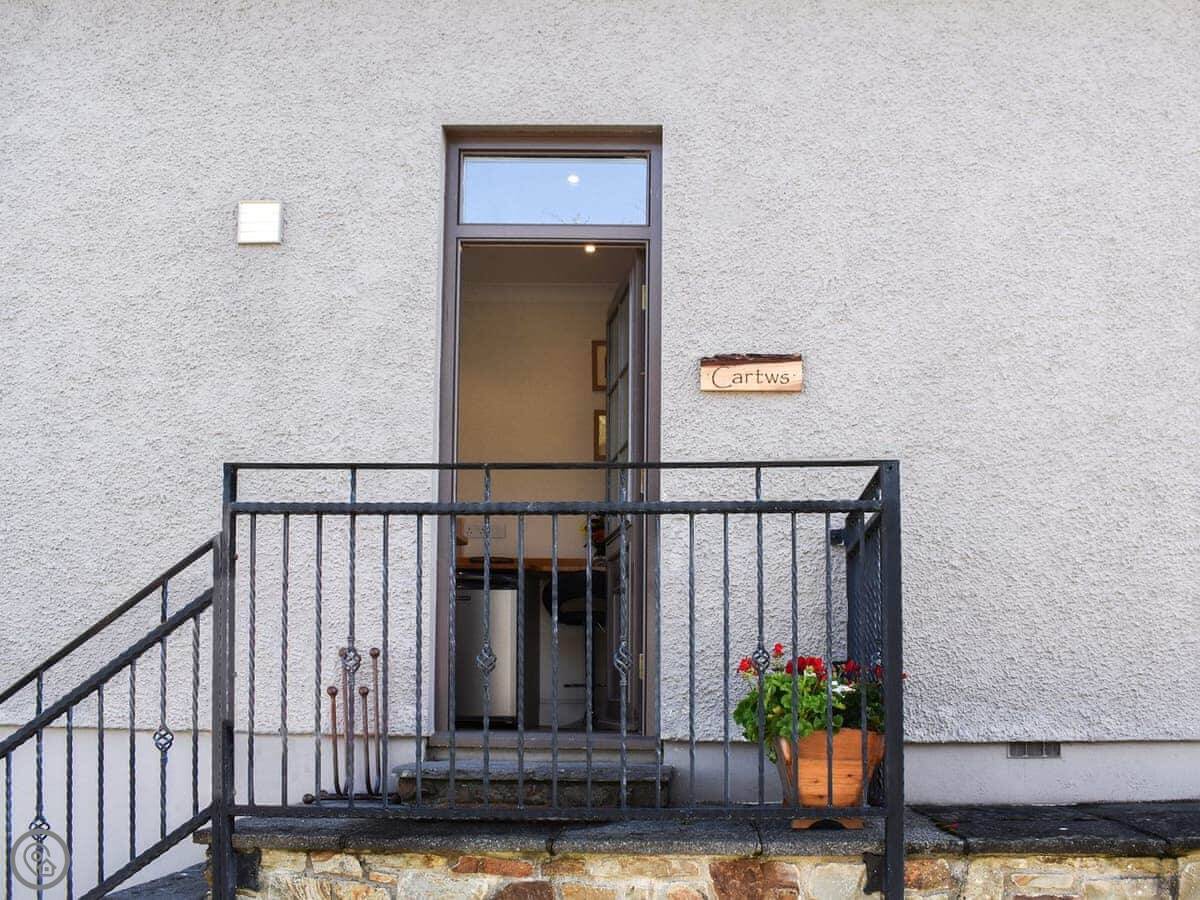 Cartws Blaenparc Coach House is a converted coach house on our farm here in Caledrhydiau. It's for two people. One bedroom, one bathroom. It's got a 4 Star rating, which means it's comfortable and well-equipped.