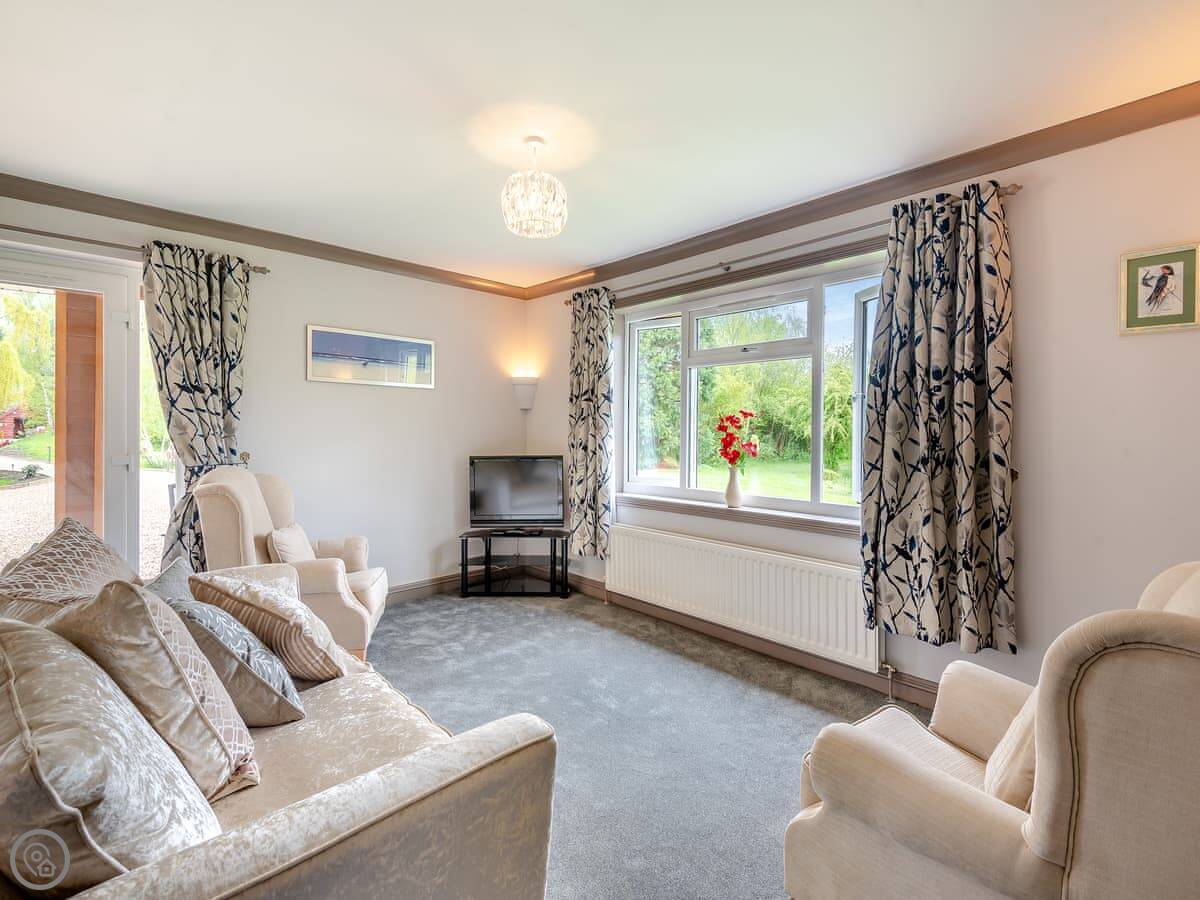This one's called Swallow. It's a lodge on Gonerby Moor in Lincolnshire. Detached. You're right by the fishing lakes here, you've got a view over one of them.