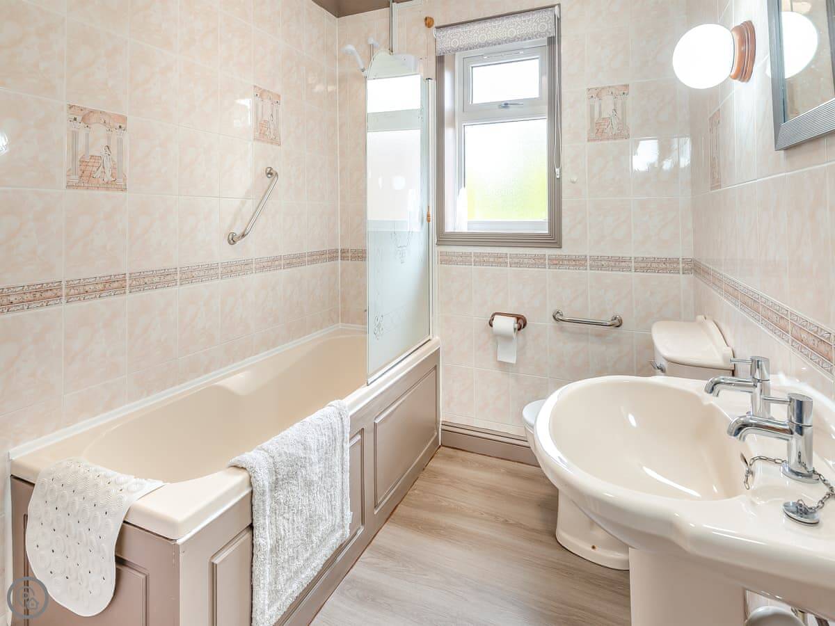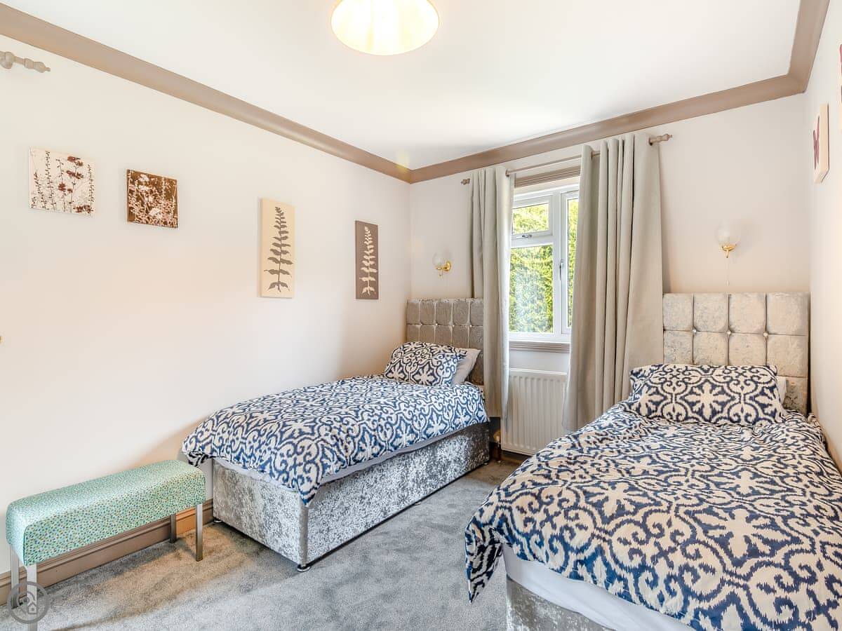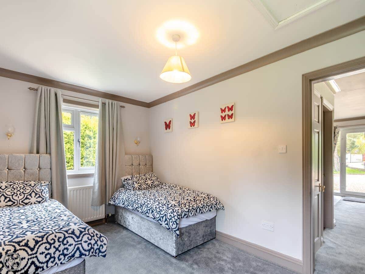 It's a 5 Star lodge, so it's comfortable and everything works. It's open plan inside. Two bedrooms, sleeps four. One bathroom with a shower. Everything's on the ground floor and there's an accessible entrance, so the steps aren't an issue.