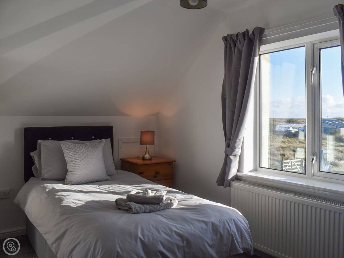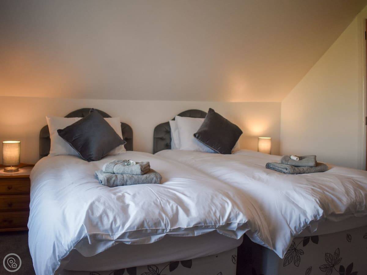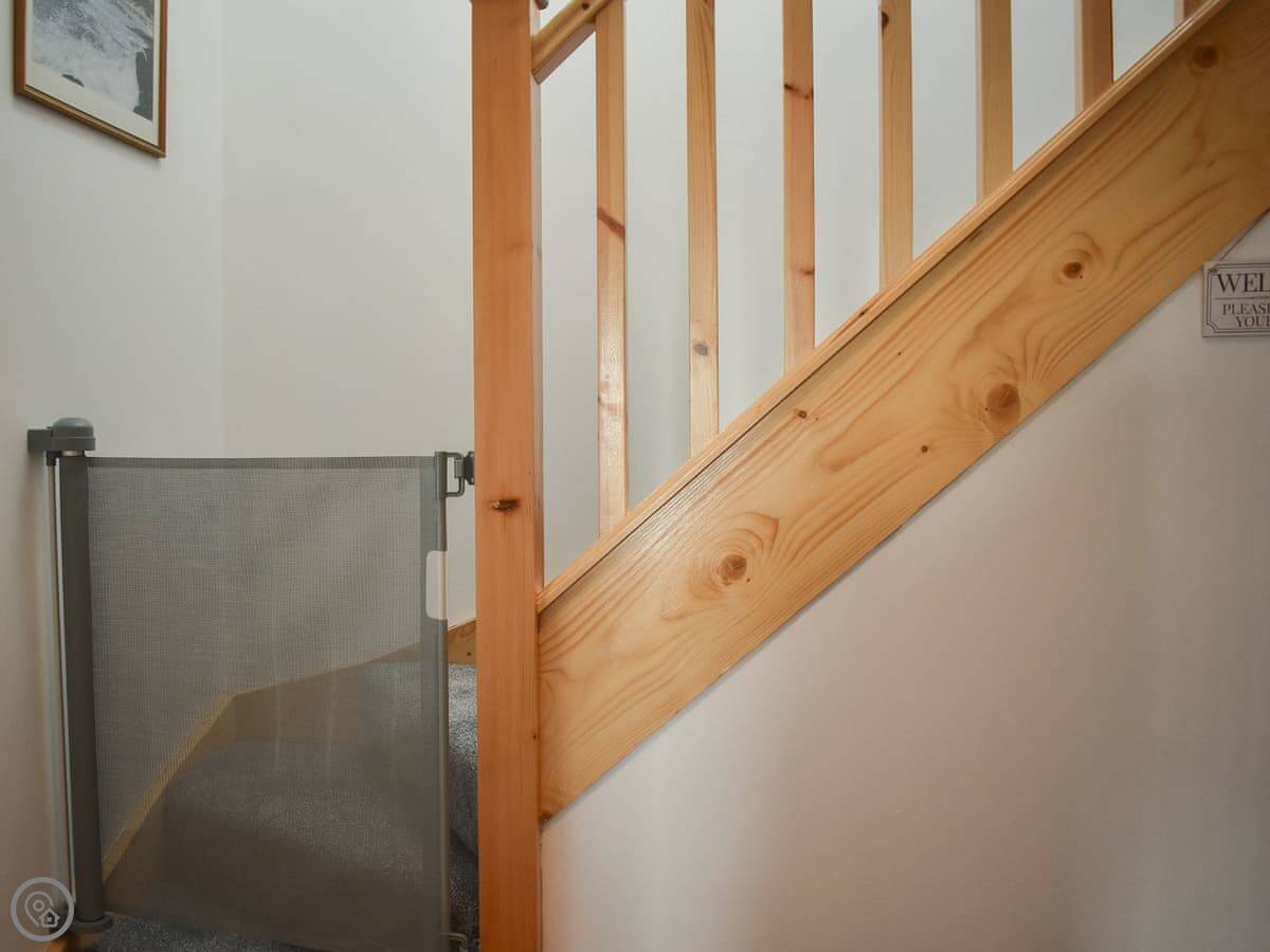 It sleeps seven in four bedrooms. Two are doubles downstairs, and upstairs there's a twin and a single room. There's a bathroom upstairs and a shower room on the ground floor. It's a 4 Star, so it's comfortable and well-equipped. The stairs are fine, just normal house stairs.