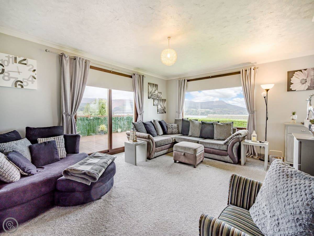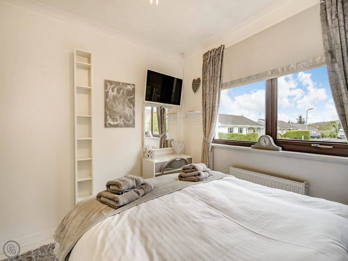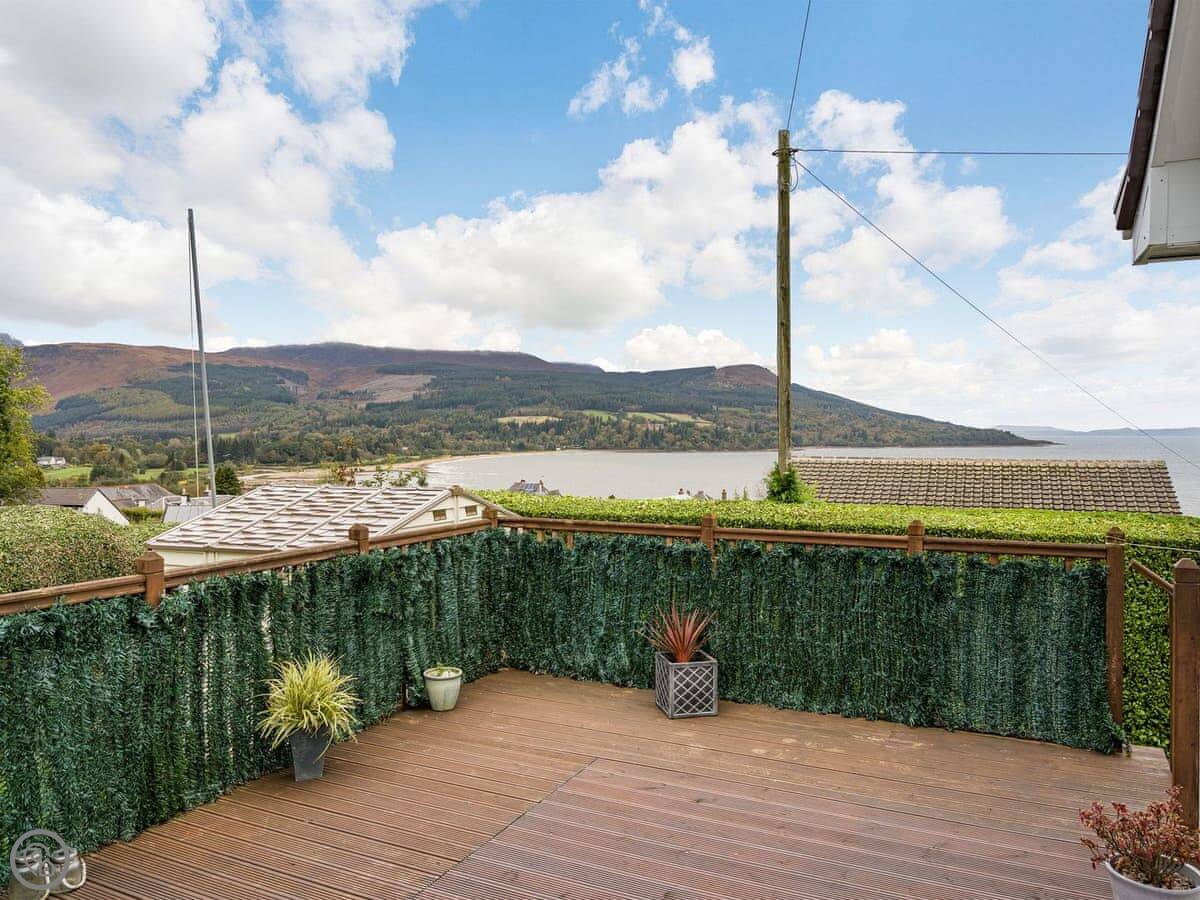 Highview is in Brodick. It's a detached cottage, so no neighbours on the other side of the wall. It's up the hill a bit, in a quiet spot. The view from the front is over the water to Goatfell. It's good for sunsets.