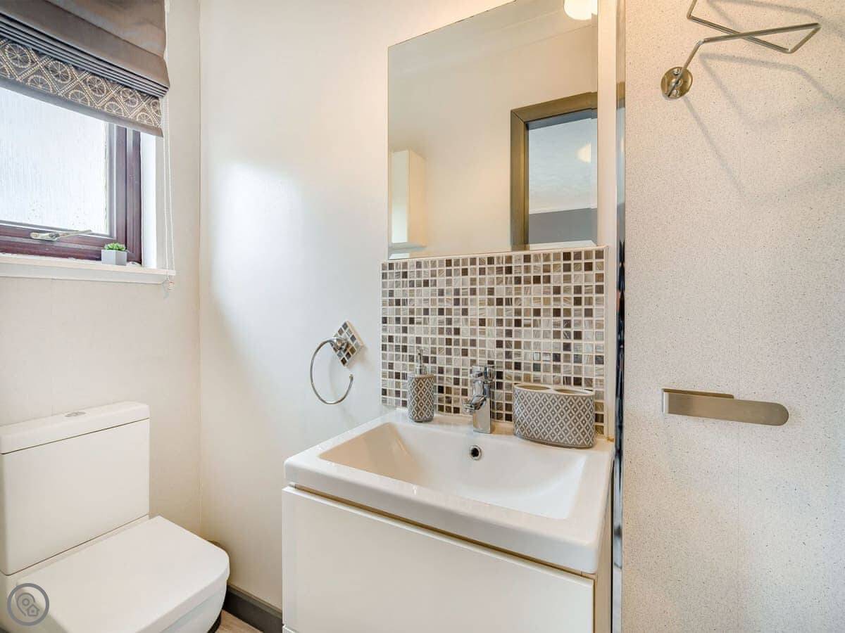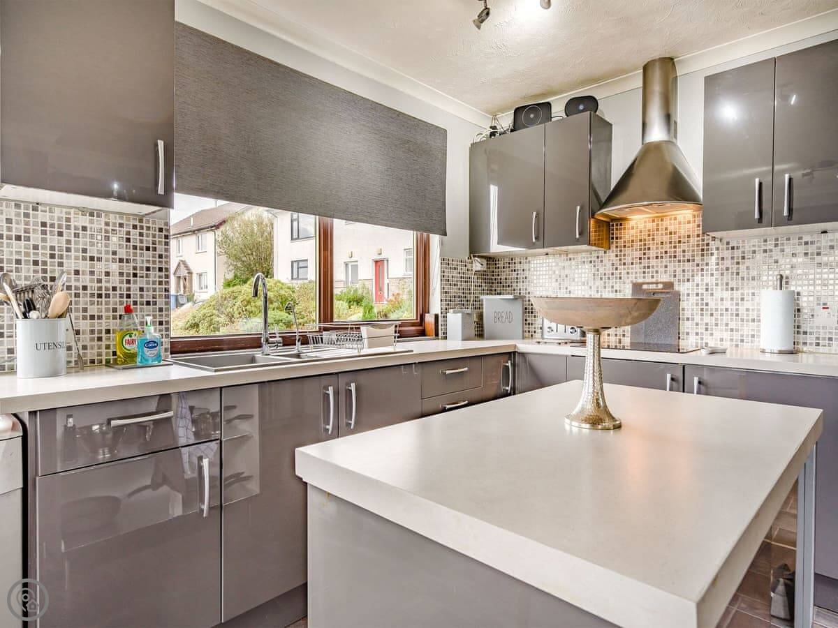 You've got a patio and a garden to yourselves. There's parking right there. Inside, it's open plan with a woodburning stove. There's a dishwasher and a washing machine. Bedding and towels are included. We can provide a cot and a highchair if you need them.