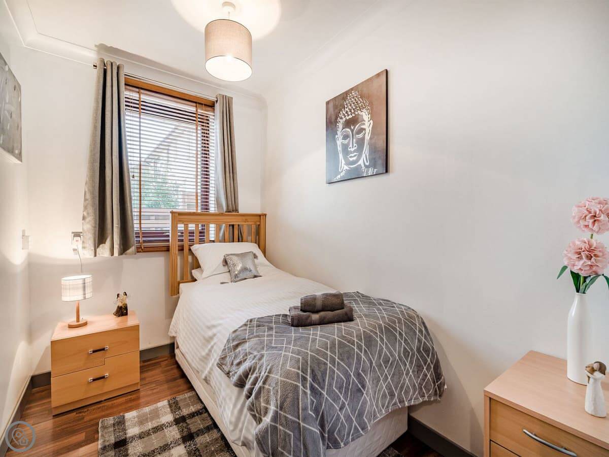 It sleeps six, in four bedrooms. There are two bathrooms. Everything's on one level, which is useful. It's got a 4 Star rating, so it's well looked after. The doors are wide enough for a wheelchair to get through.