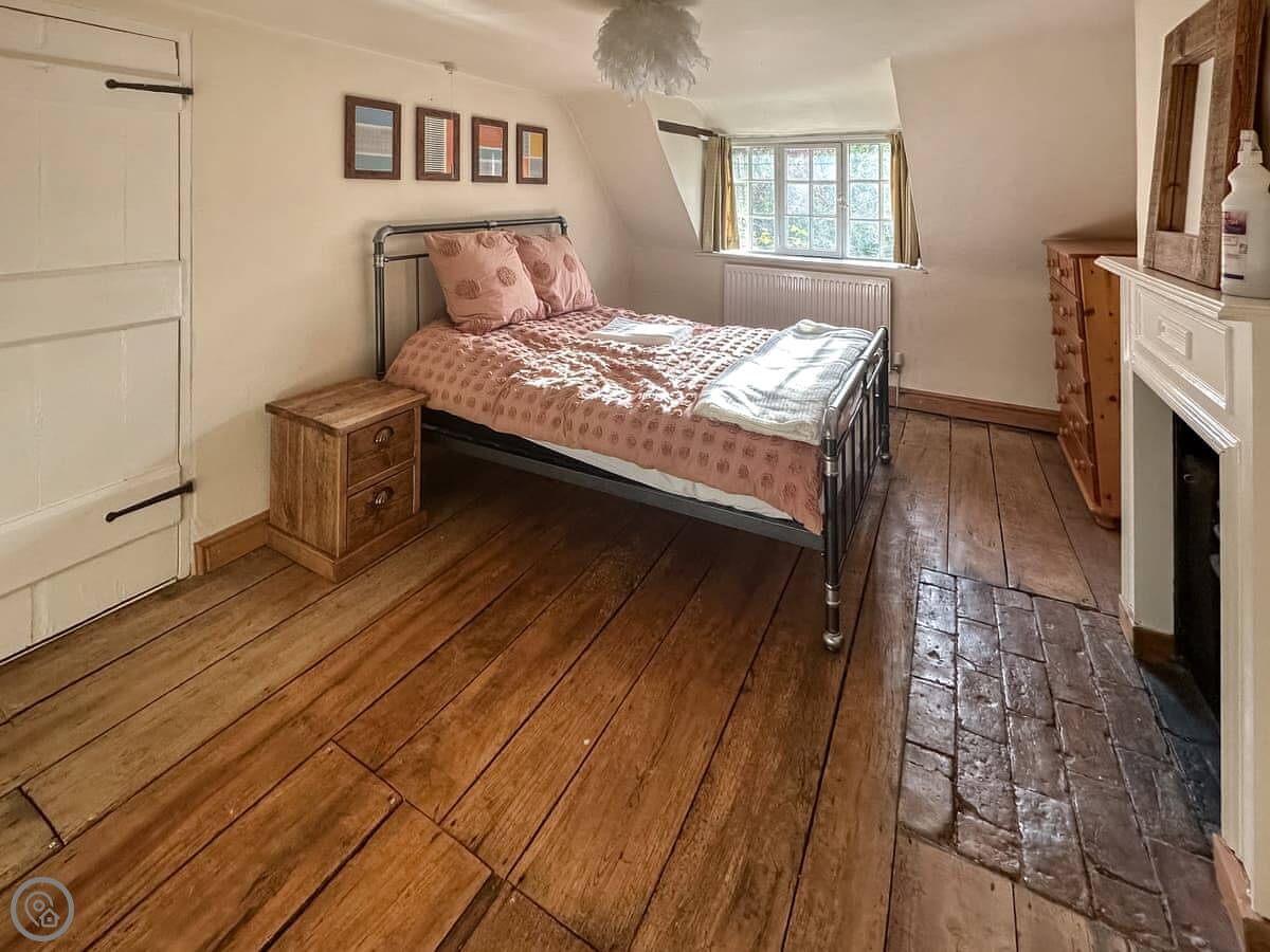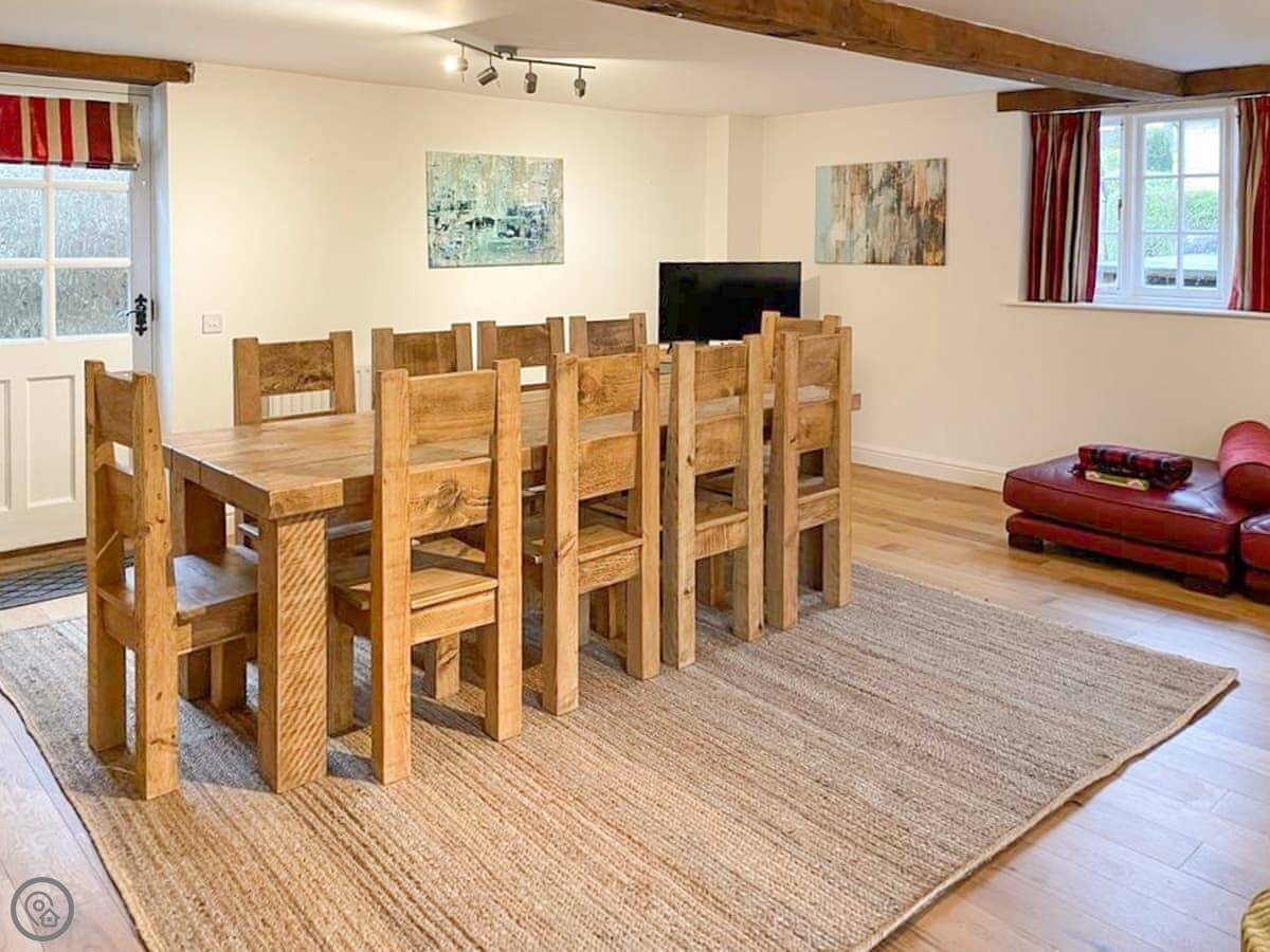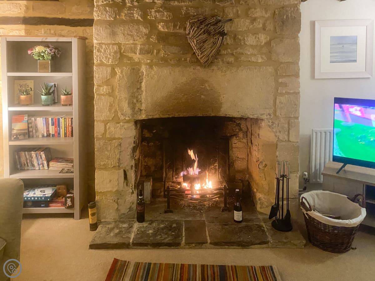 The kitchen is a good size. The living room has a big inglenook fireplace with an open fire. There's a separate dining room with sofas as well. The stairs are standard for an old cottage.