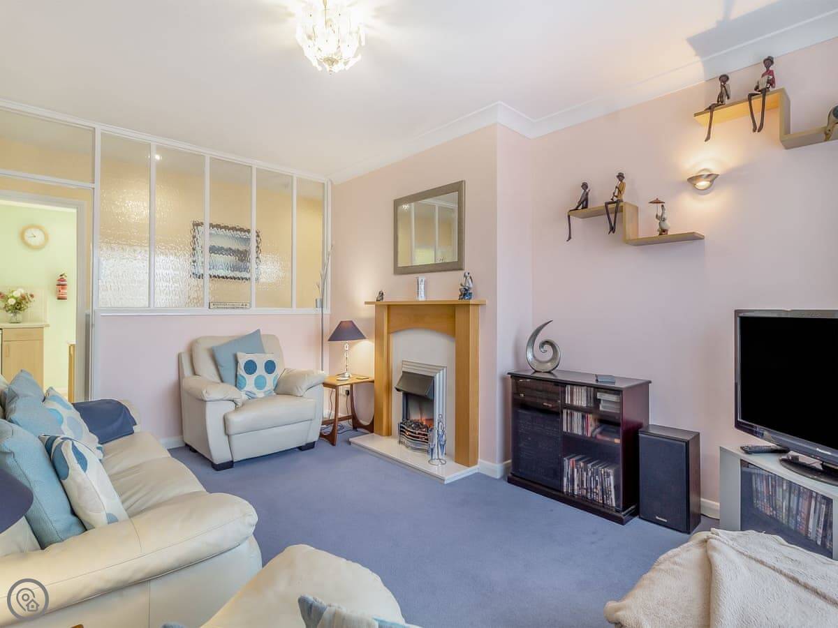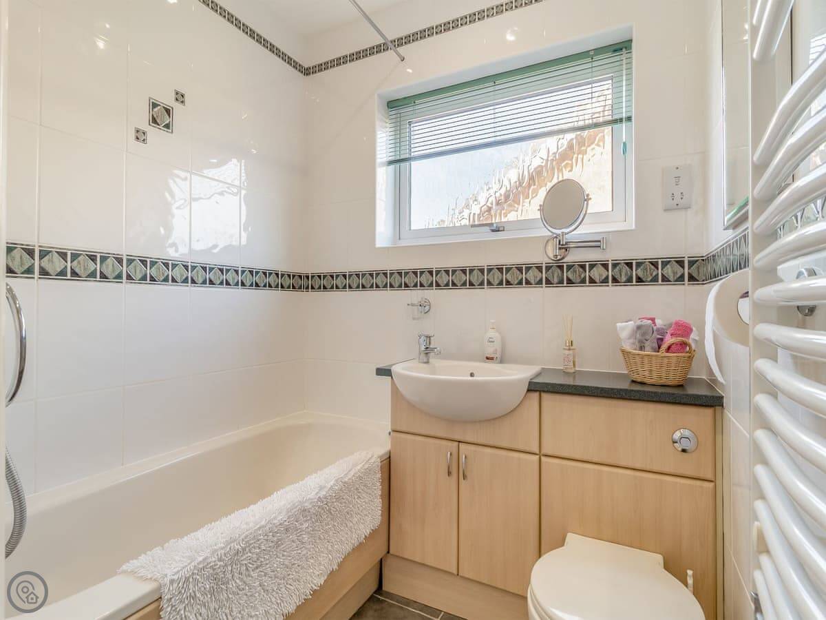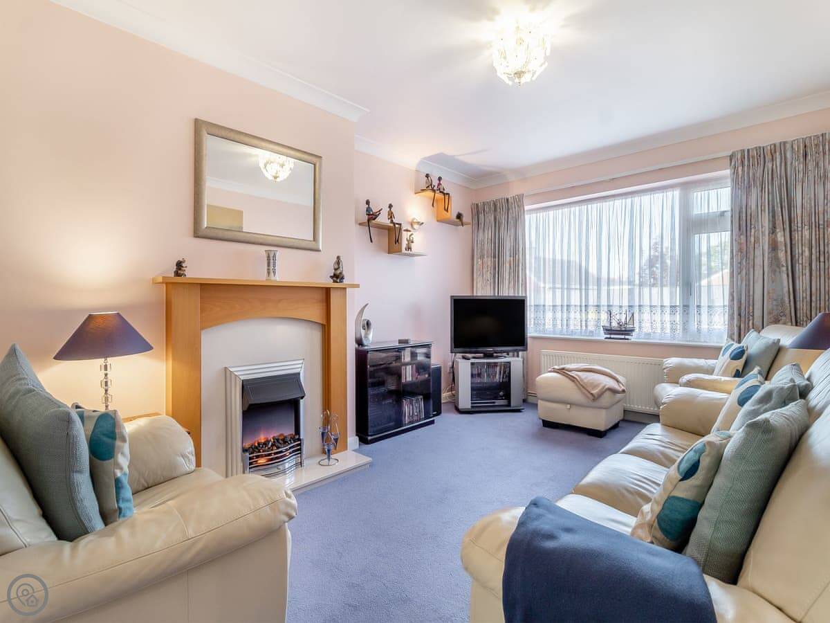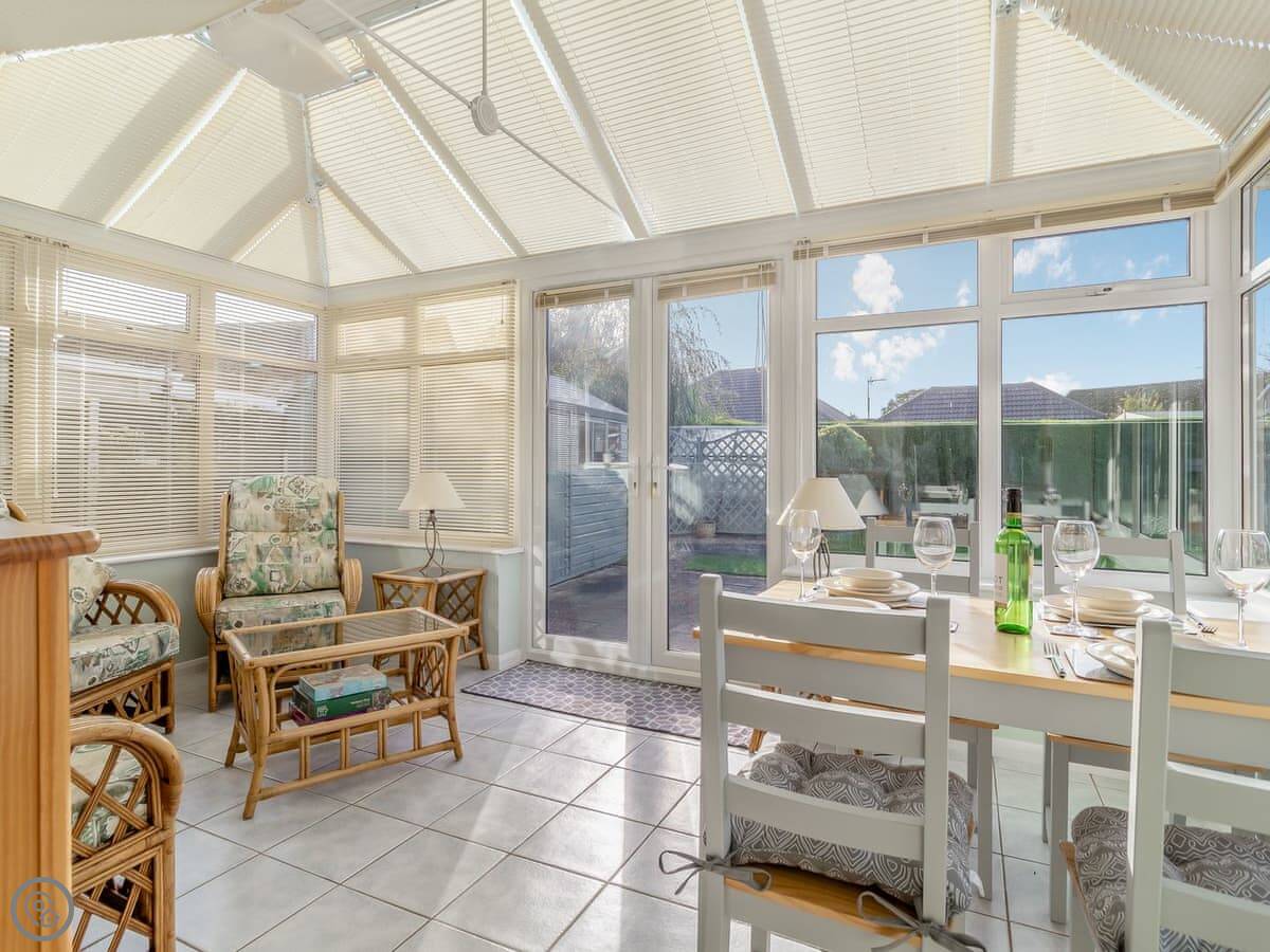 It sleeps six, with three bedrooms and one bathroom. Everything is on the ground floor. The doorways are wide and there's a level entrance, so it's suitable for wheelchairs or if stairs are a problem. It's got a 4 Star rating. It's well equipped and comfortable.