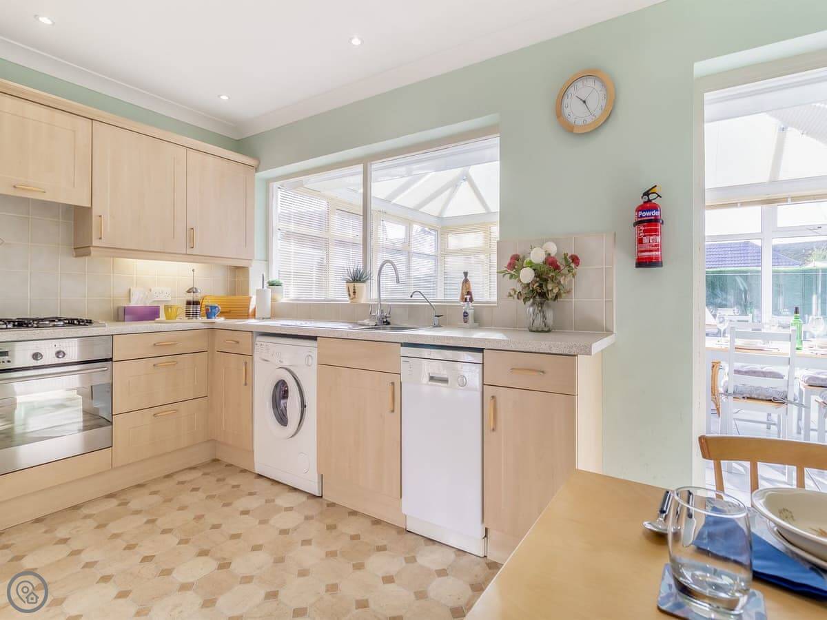Inside, you've got a washing machine, a dishwasher, WiFi, and a TV. Bedding and towels are included. No pets, sorry.