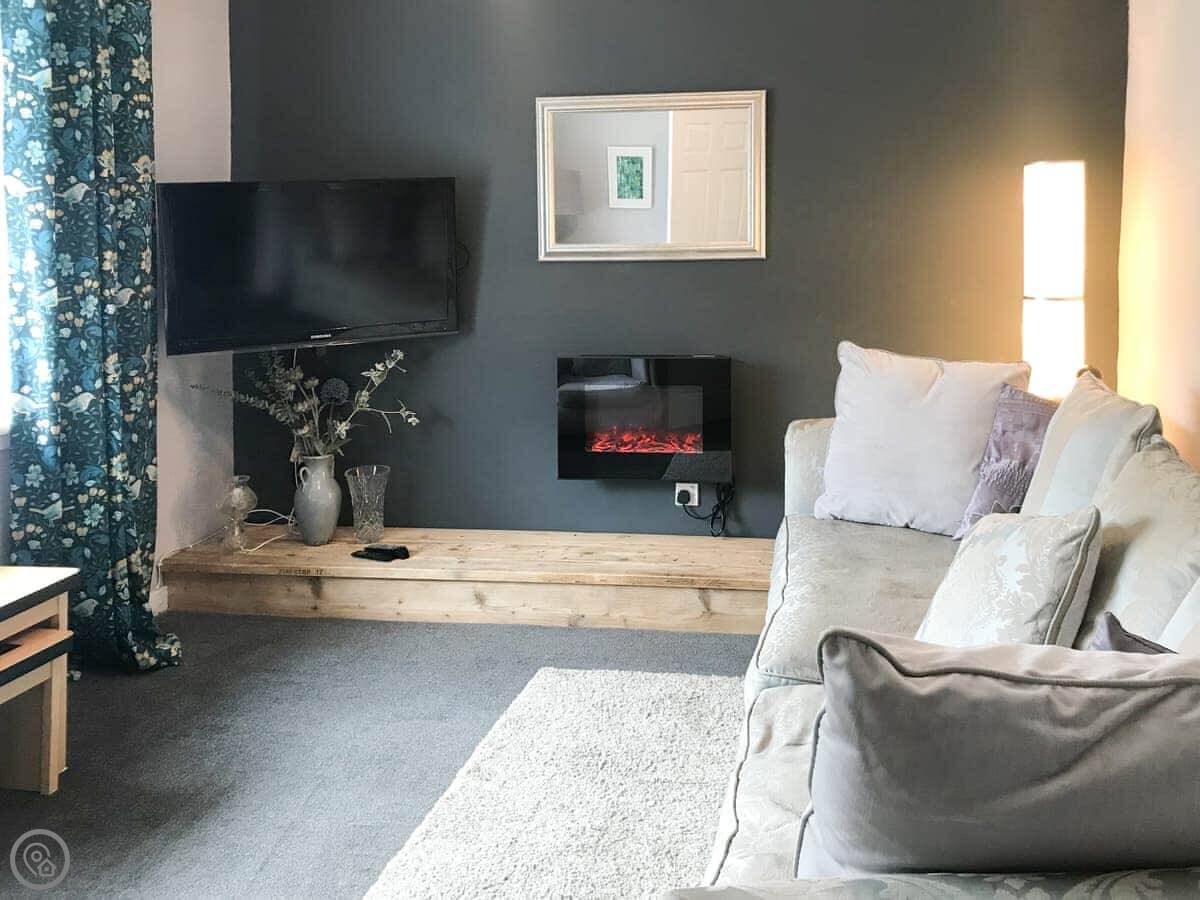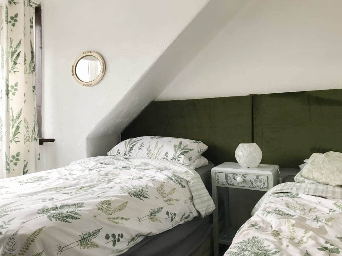 It sleeps four. Two bedrooms, one bathroom. It's got a 4 Star rating. It's comfortable and generally well looked after. There's a small walled garden out the back with a patio.