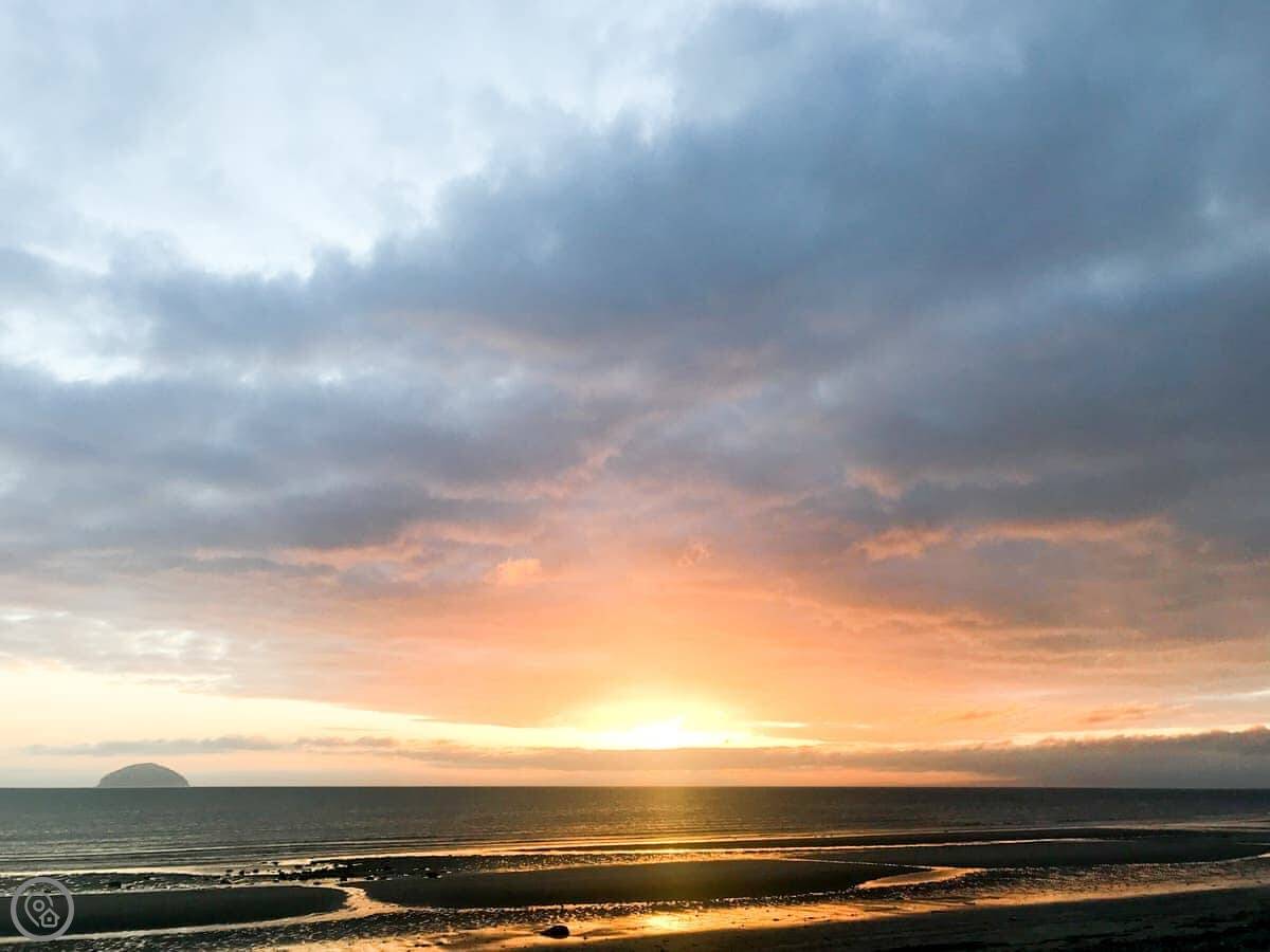 Kitty's Cottage is a two bedroom place right on the main residential street in Girvan. It's a short terrace house, attached on one side. You're about 150 yards from the beach. You can see Ailsa Craig from the front upstairs window.