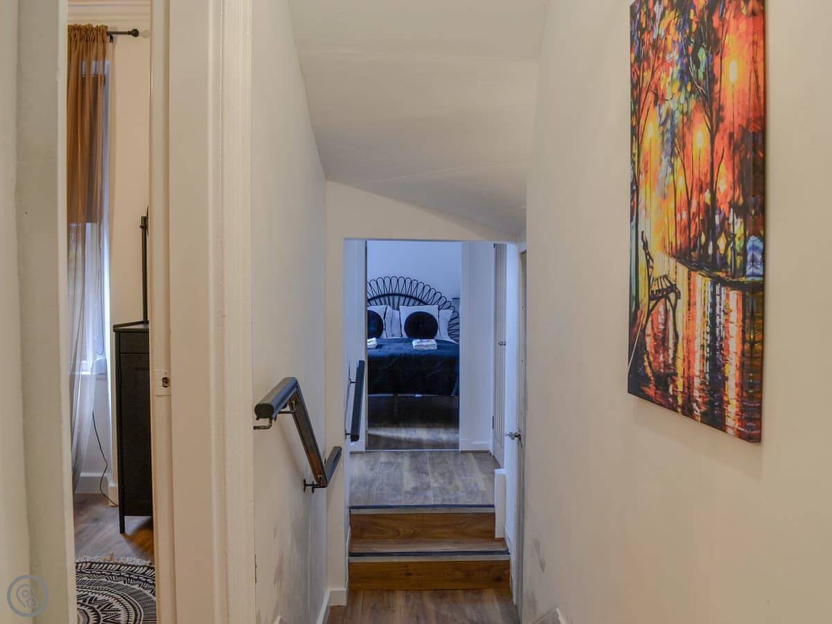 The place is all on one floor. Open plan living room and kitchen. Two sofas, TV, decent wifi. The kitchen has what you need. Washing machine's there. Bedding and towels are included.