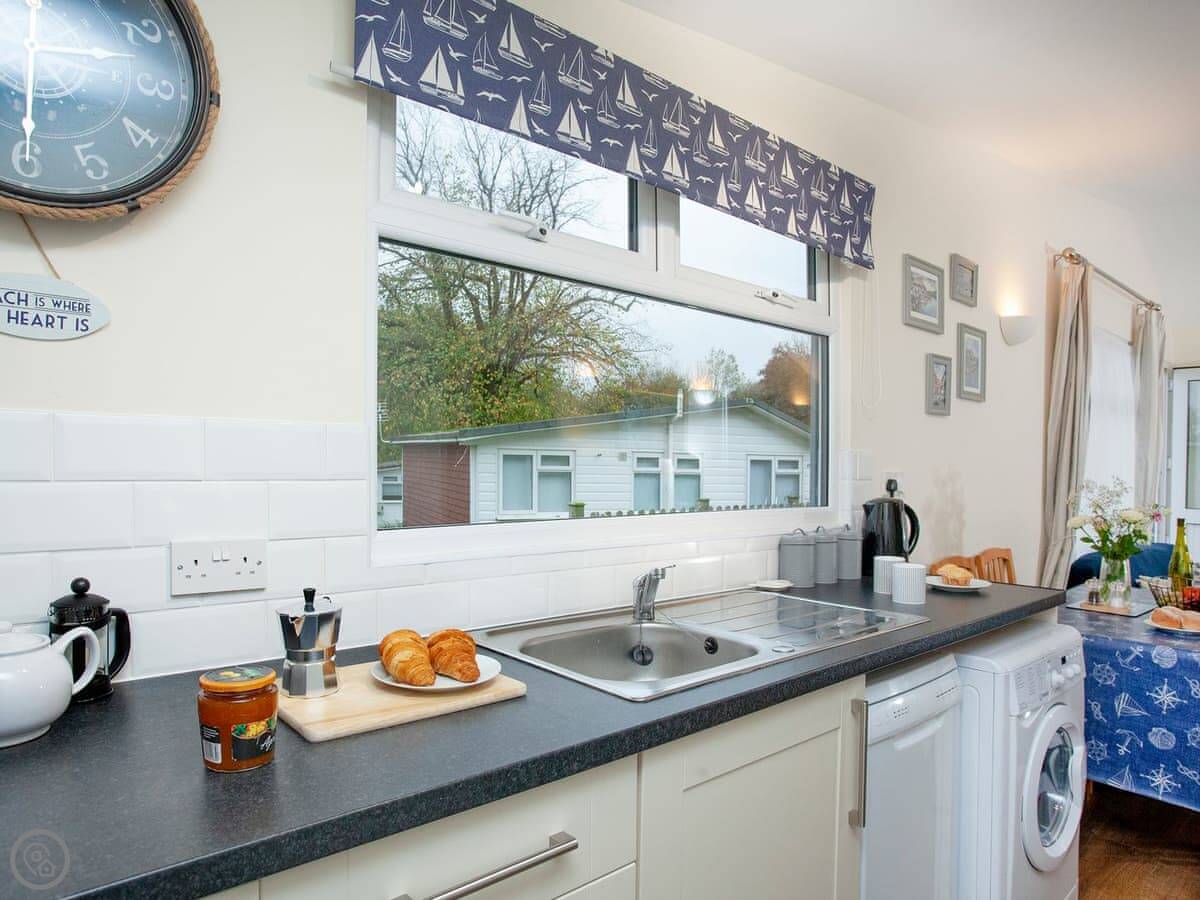 Sunnydaze is a chalet at Norton Park, about five minutes outside Dartmouth by car. The site is quiet. Dartmouth gets busy, so it’s good to be a little way out.