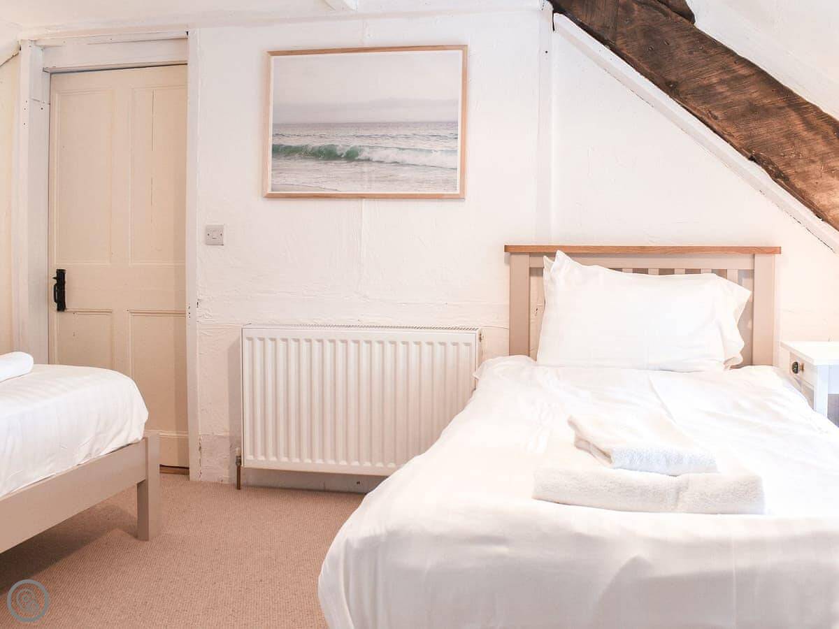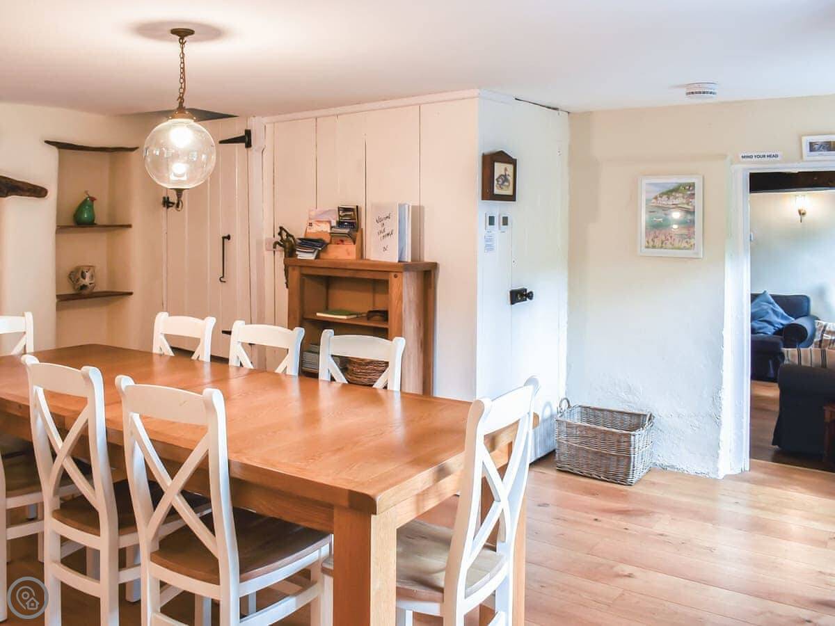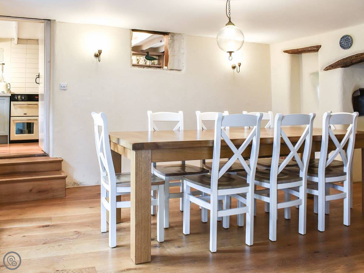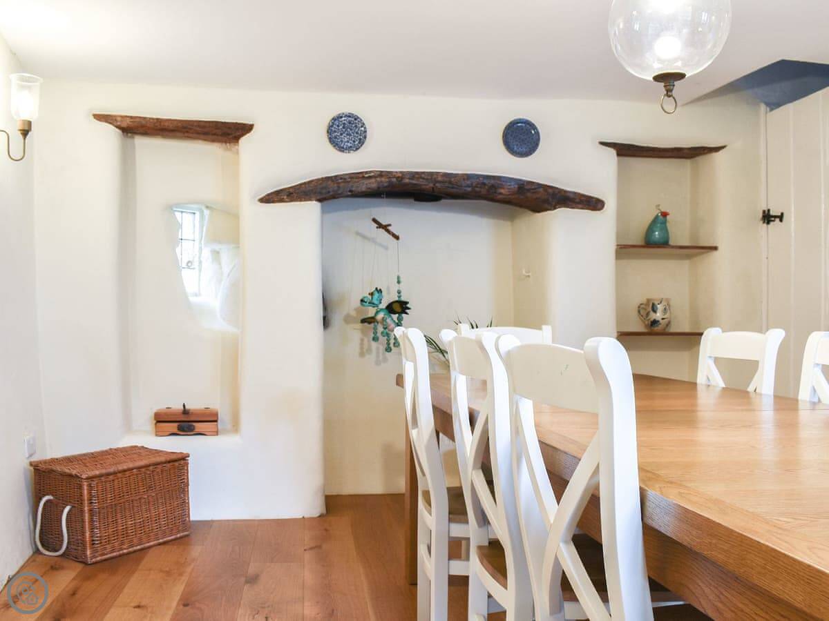 What used to originally be three properties, Grade II Listed Vale Cottage is now one long thatched holiday home, dating back to the 15th century with much of the historical character from that period remaining. Comprehensively renovated in keeping with its age and character, it now combines its period charm with 21st century comfort and convenience. Keeping with its character there are two quite steep staircases in the cottage, plus various doorways where you’ll need to mind your head if you’re tall. Downstairs is a double bedroom with an en-suite shower room and a family bathroom. Upstairs there are three bedrooms, two with en-suites, and a generous-sized twin room. There is an additional living space off one of the kingsize rooms with a sofa, large TV, DVD player and two games consoles. Downstairs you will find a well-equipped kitchen, and the utility room houses a large fridge, separate freezer and washer/dryer. Both the separate dining room, which seats eight people, and living room have wonderful original oak beams and inglenook fireplaces, with the living room benefiting from an electric wood burner-style fire, there is also a Smart TV and Bose Bluetooth speaker in the living room. Outside, via the kitchen stable door, is a lovely covered courtyard with furniture, perfect for al-fresco dining or evening drinks, whatever the weather. There is a separate bigger garden just up the lane – a peaceful place to absorb the Devon sunshine and where you can also enjoy a barbecue. There is an outdoor shower here too, perfect for after a day in the surf.