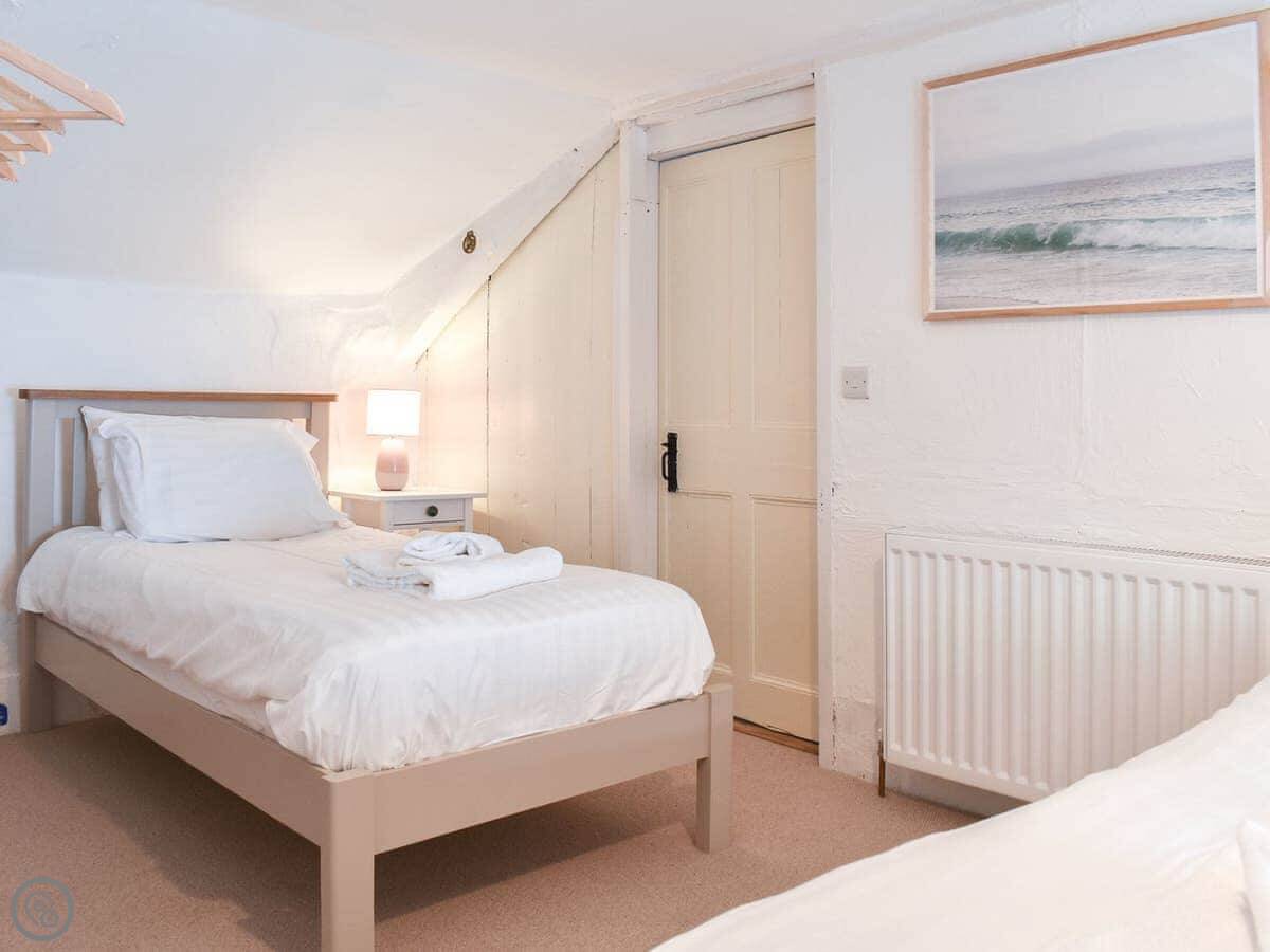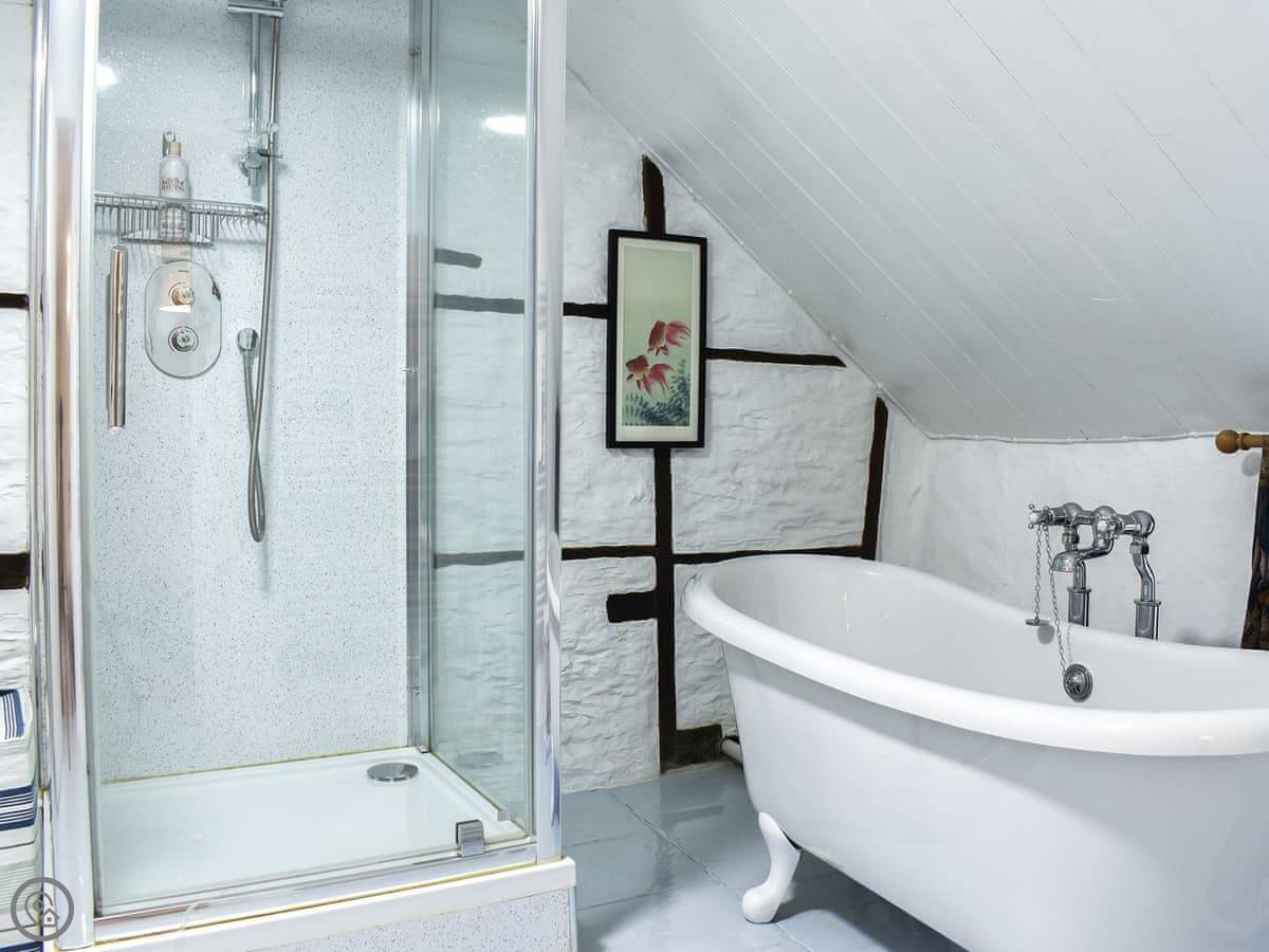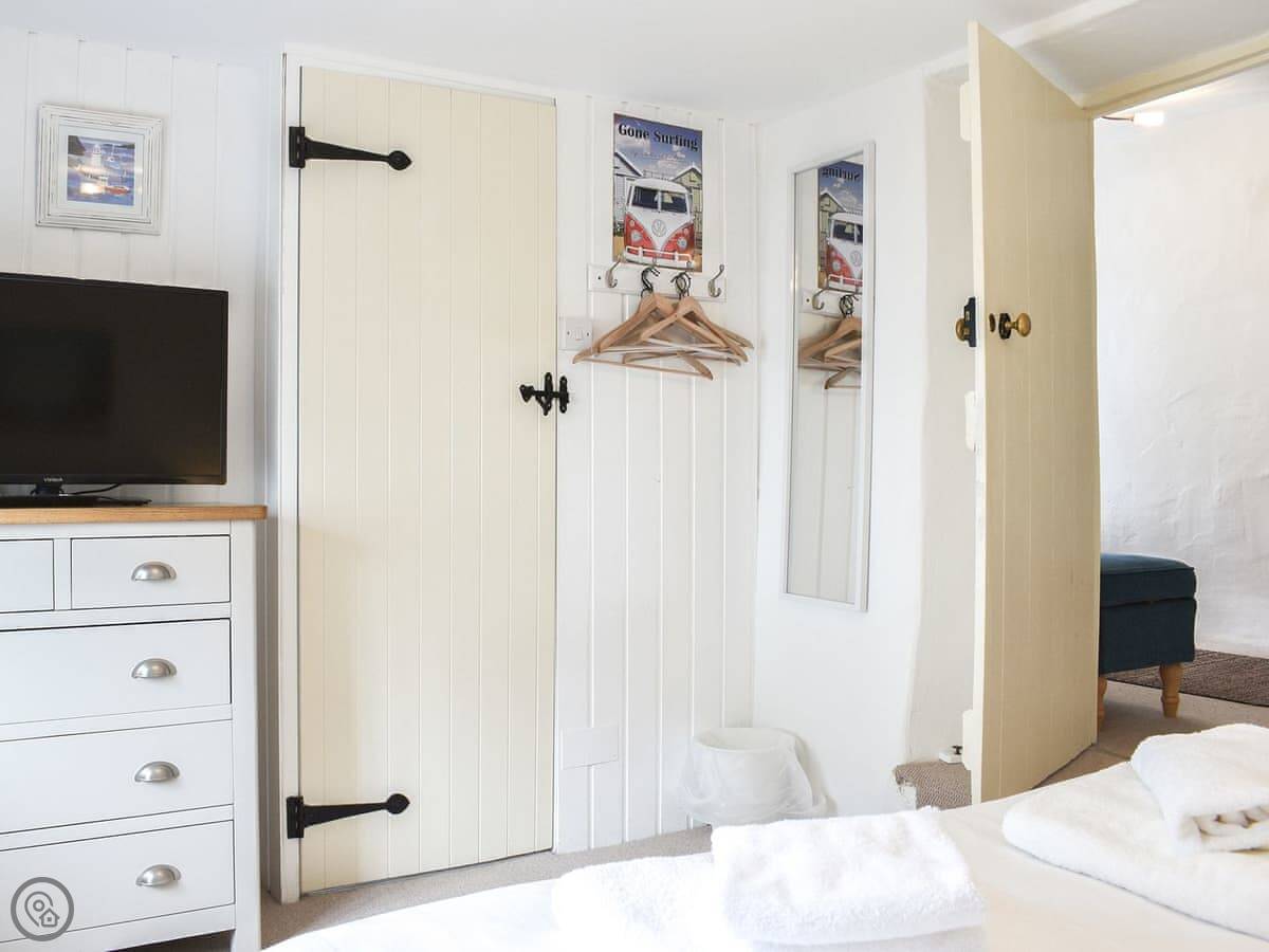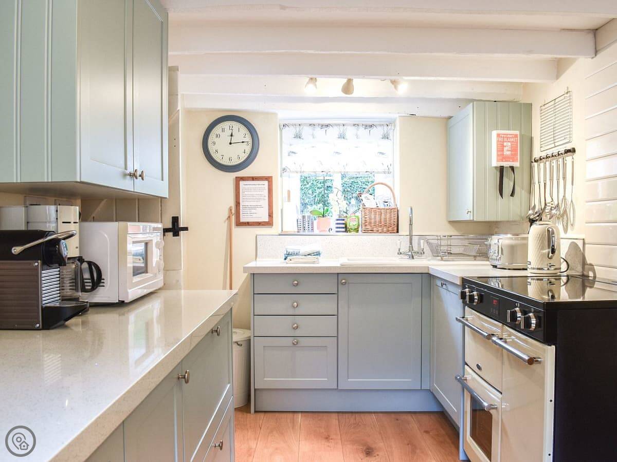 What used to originally be three properties, Grade II Listed Vale Cottage is now one long thatched holiday home, dating back to the 15th century with much of the historical character from that period remaining. Comprehensively renovated in keeping with its age and character, it now combines its period charm with 21st century comfort and convenience. Keeping with its character there are two quite steep staircases in the cottage, plus various doorways where you’ll need to mind your head if you’re tall. Downstairs is a double bedroom with an en-suite shower room and a family bathroom. Upstairs there are three bedrooms, two with en-suites, and a generous-sized twin room. There is an additional living space off one of the kingsize rooms with a sofa, large TV, DVD player and two games consoles. Downstairs you will find a well-equipped kitchen, and the utility room houses a large fridge, separate freezer and washer/dryer. Both the separate dining room, which seats eight people, and living room have wonderful original oak beams and inglenook fireplaces, with the living room benefiting from an electric wood burner-style fire, there is also a Smart TV and Bose Bluetooth speaker in the living room. Outside, via the kitchen stable door, is a lovely covered courtyard with furniture, perfect for al-fresco dining or evening drinks, whatever the weather. There is a separate bigger garden just up the lane – a peaceful place to absorb the Devon sunshine and where you can also enjoy a barbecue. There is an outdoor shower here too, perfect for after a day in the surf.