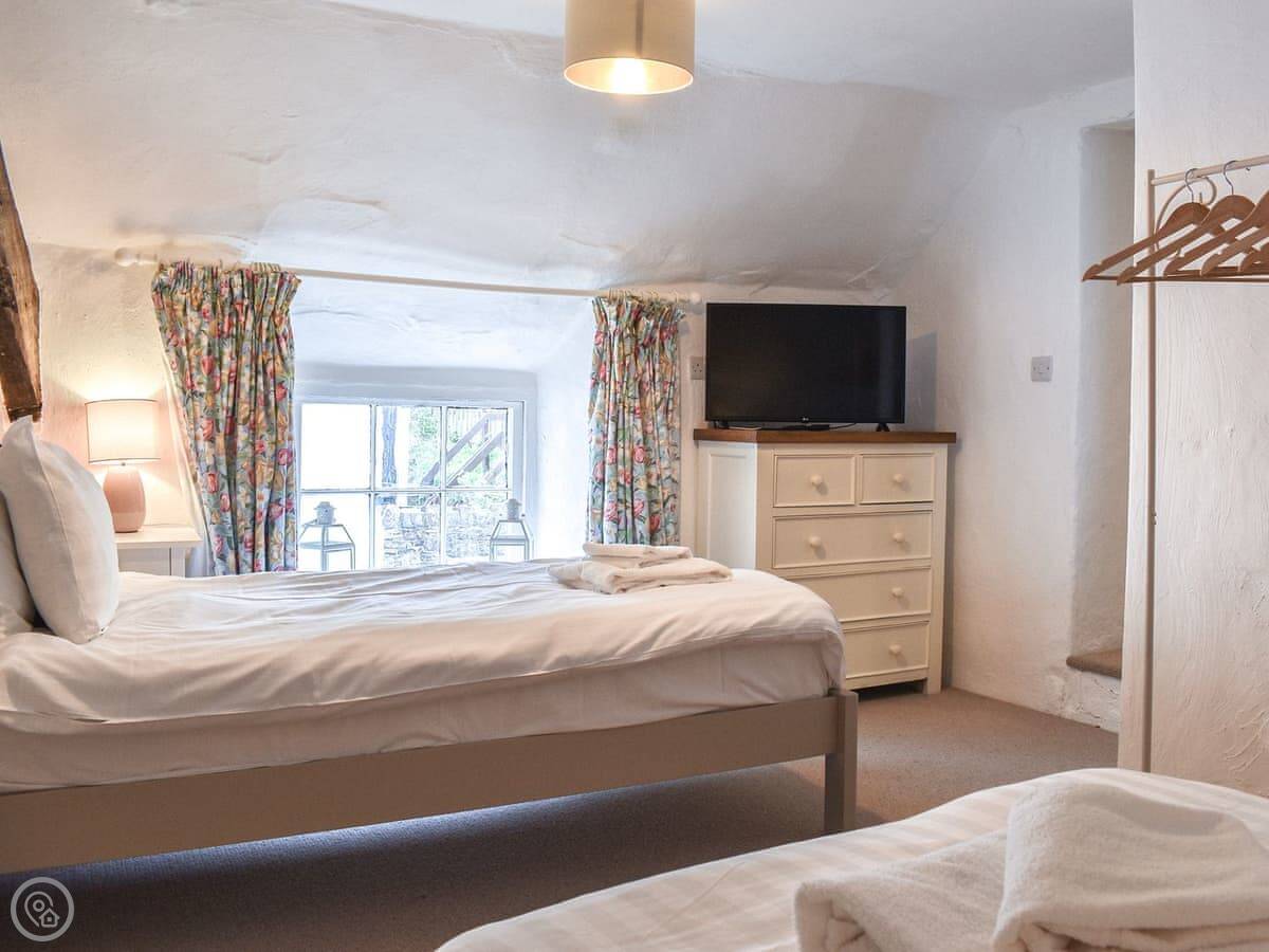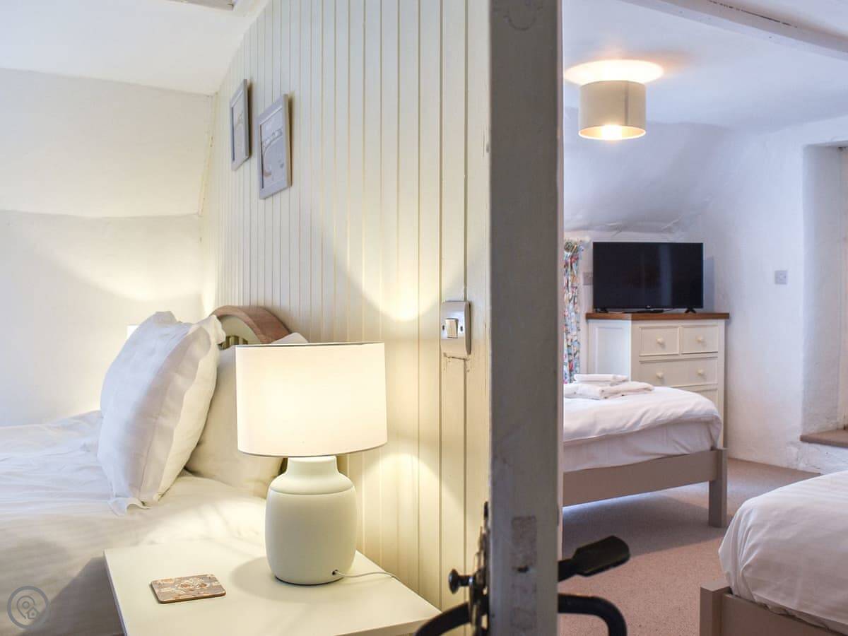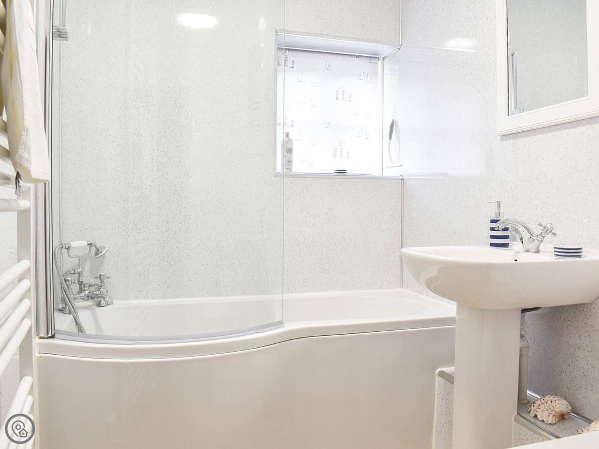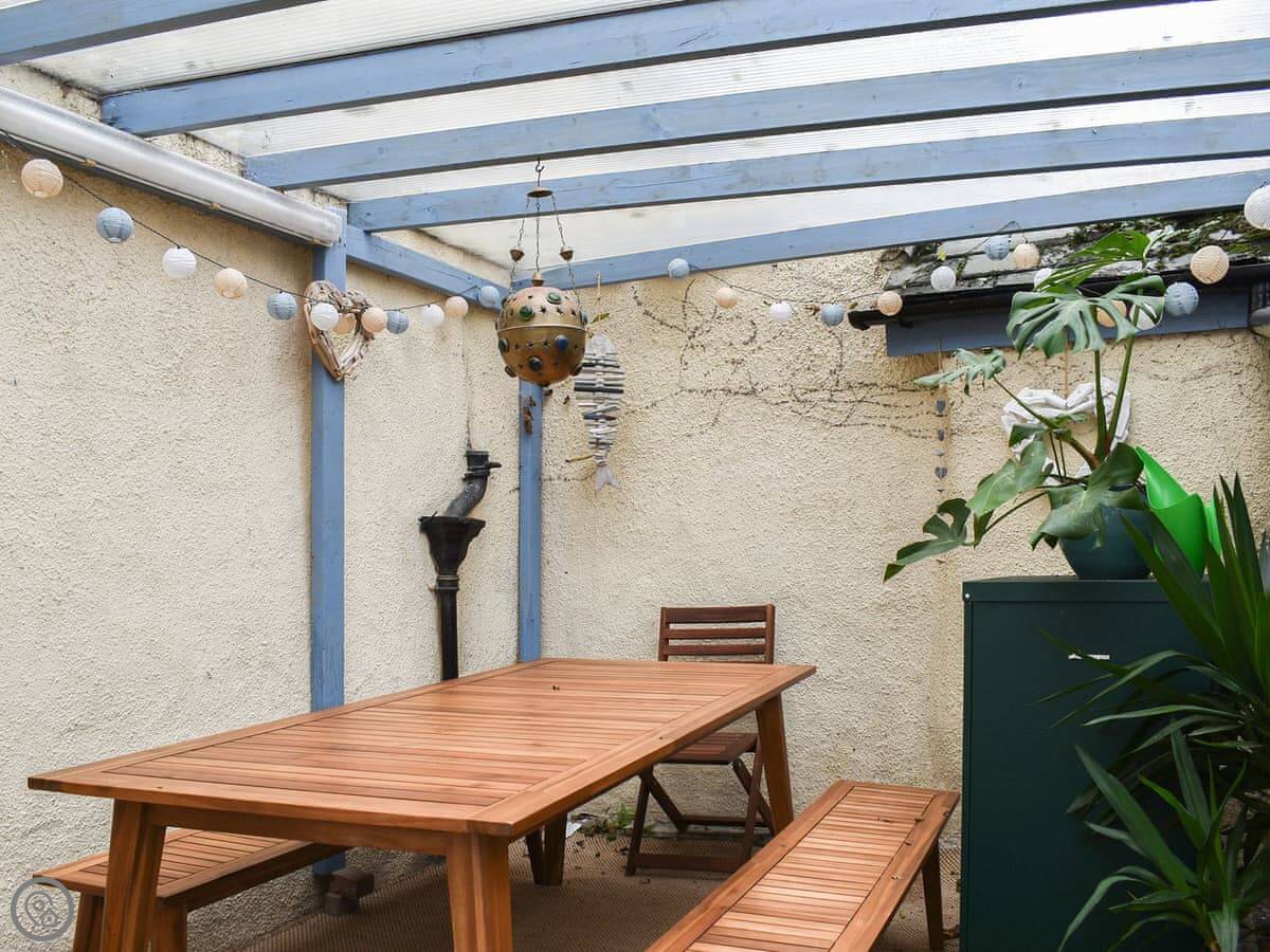 What used to originally be three properties, Grade II Listed Vale Cottage is now one long thatched holiday home, dating back to the 15th century with much of the historical character from that period remaining. Comprehensively renovated in keeping with its age and character, it now combines its period charm with 21st century comfort and convenience. Keeping with its character there are two quite steep staircases in the cottage, plus various doorways where you’ll need to mind your head if you’re tall. Downstairs is a double bedroom with an en-suite shower room and a family bathroom. Upstairs there are three bedrooms, two with en-suites, and a generous-sized twin room. There is an additional living space off one of the kingsize rooms with a sofa, large TV, DVD player and two games consoles. Downstairs you will find a well-equipped kitchen, and the utility room houses a large fridge, separate freezer and washer/dryer. Both the separate dining room, which seats eight people, and living room have wonderful original oak beams and inglenook fireplaces, with the living room benefiting from an electric wood burner-style fire, there is also a Smart TV and Bose Bluetooth speaker in the living room. Outside, via the kitchen stable door, is a lovely covered courtyard with furniture, perfect for al-fresco dining or evening drinks, whatever the weather. There is a separate bigger garden just up the lane – a peaceful place to absorb the Devon sunshine and where you can also enjoy a barbecue. There is an outdoor shower here too, perfect for after a day in the surf.